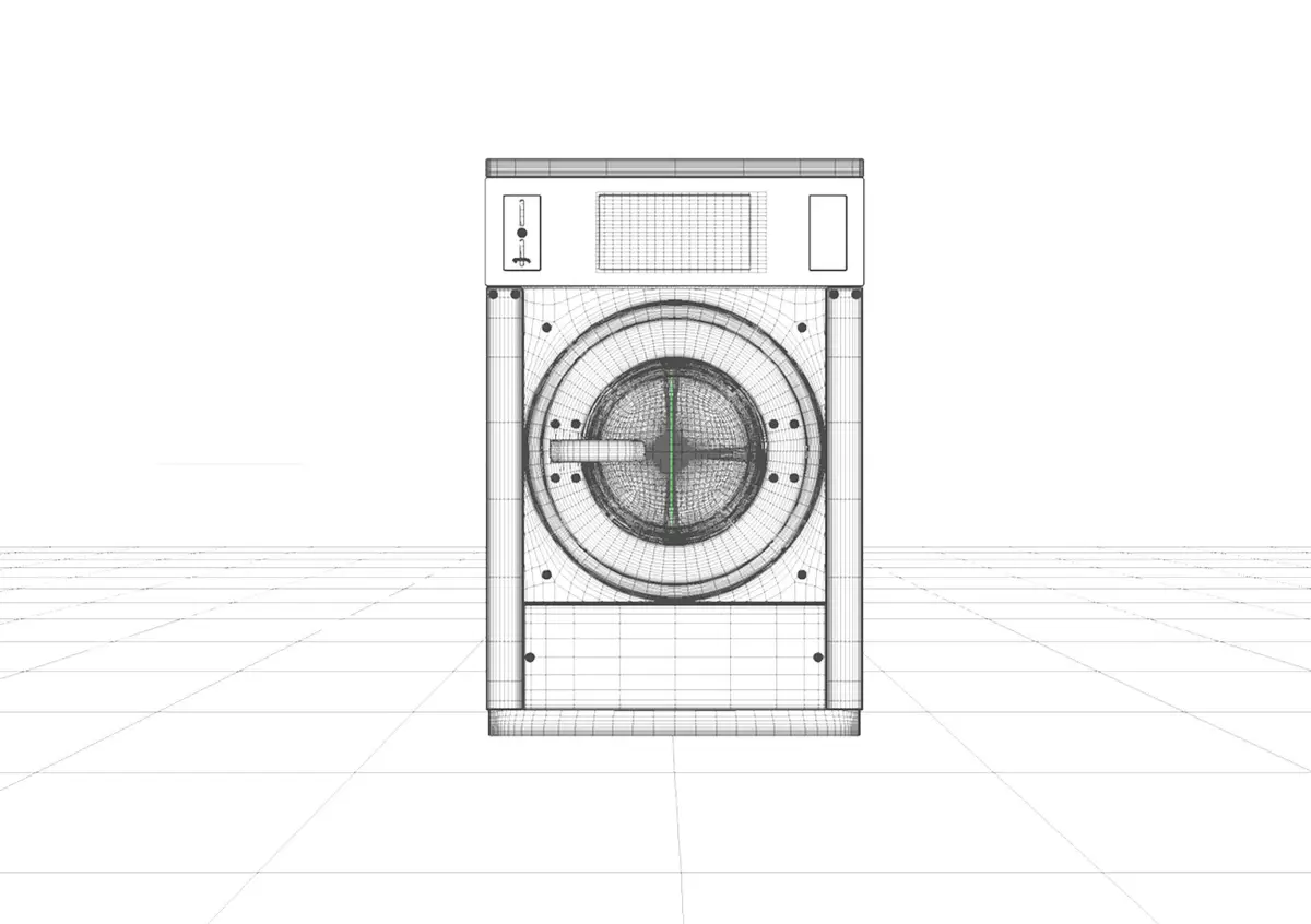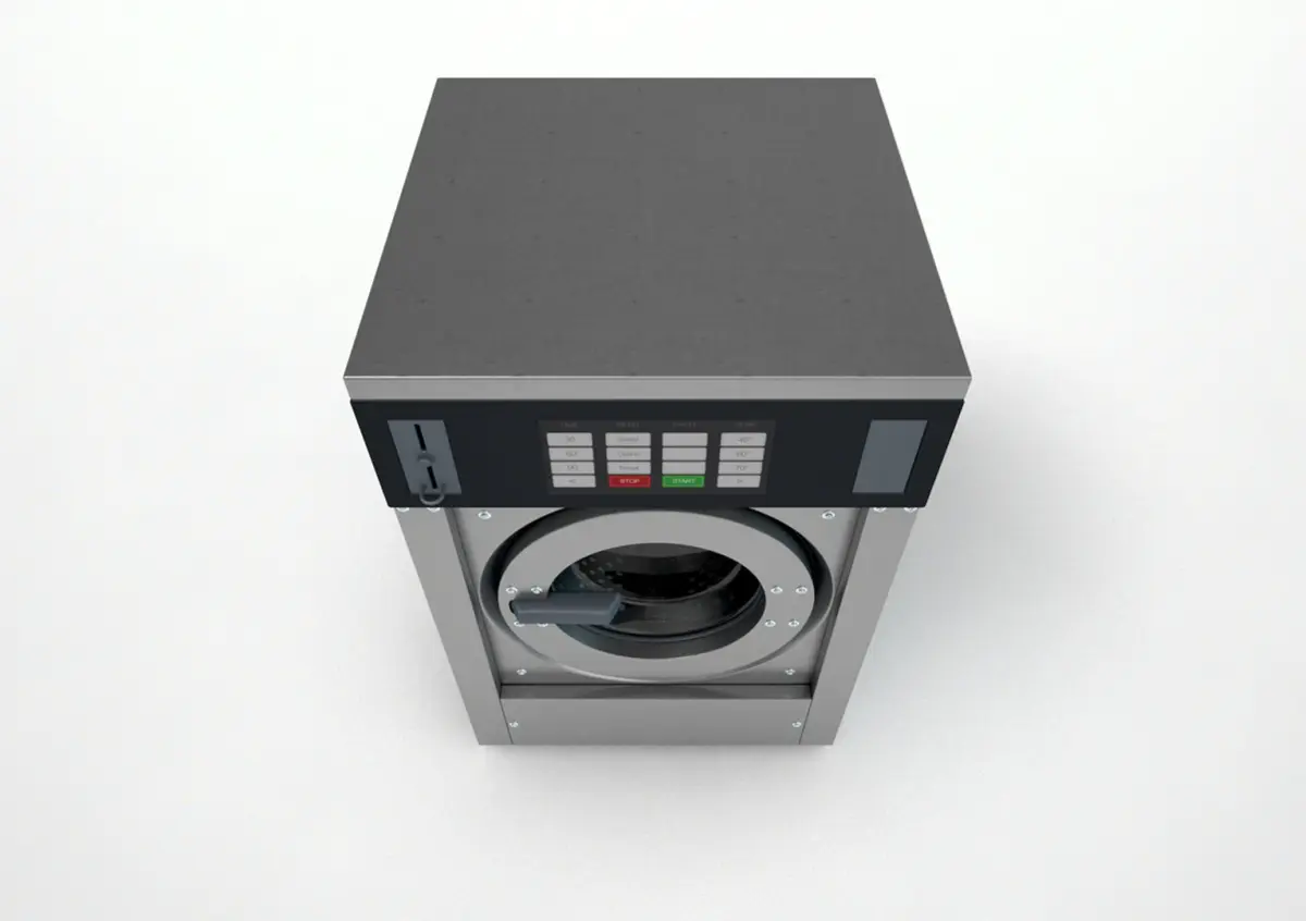 An generic industrial washing machine made of stainless steel