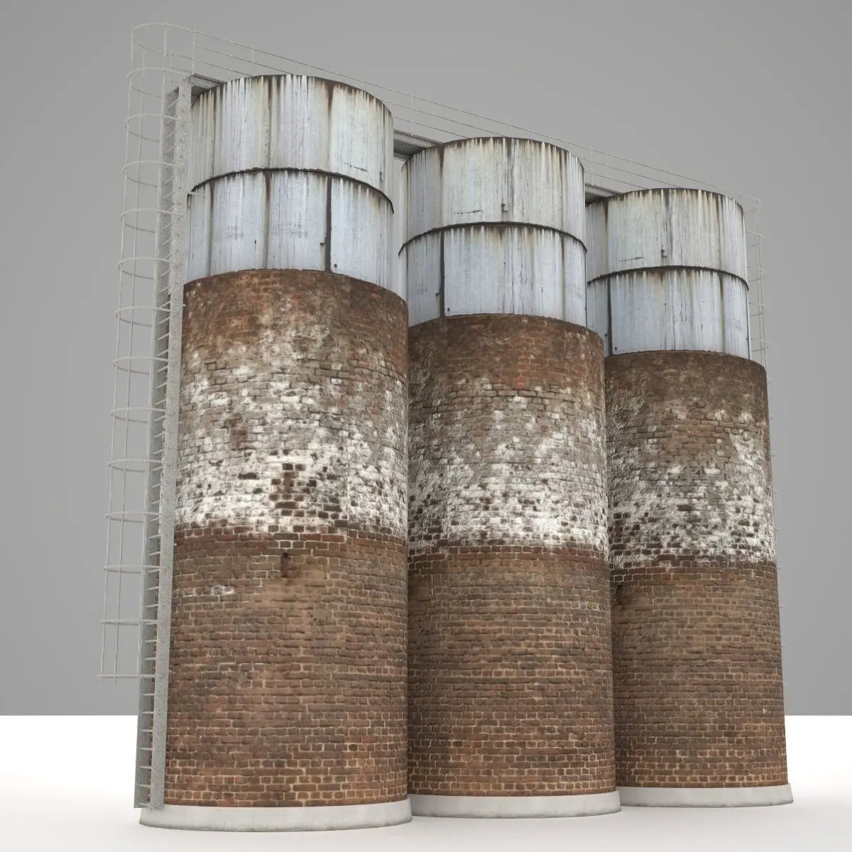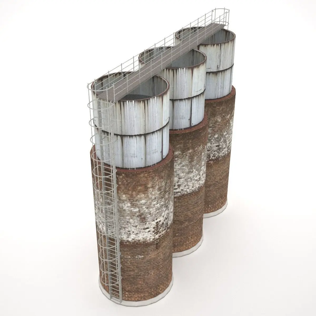 A 3 water towers structure with detailed ladders and ramp.