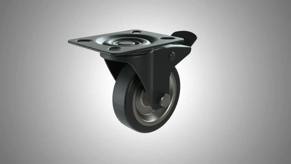 Caster (roller, roll, castor, pulley, sheave) rolling detail that can be attached to the bottom of various objects to enable these objects to be moved. Casters are used in numerous applications, including furniture, beds, shopping carts, office chairs, seating furniture, equipment stands, light machinery, hospital beds, cabinets, and more.