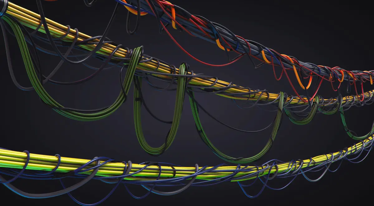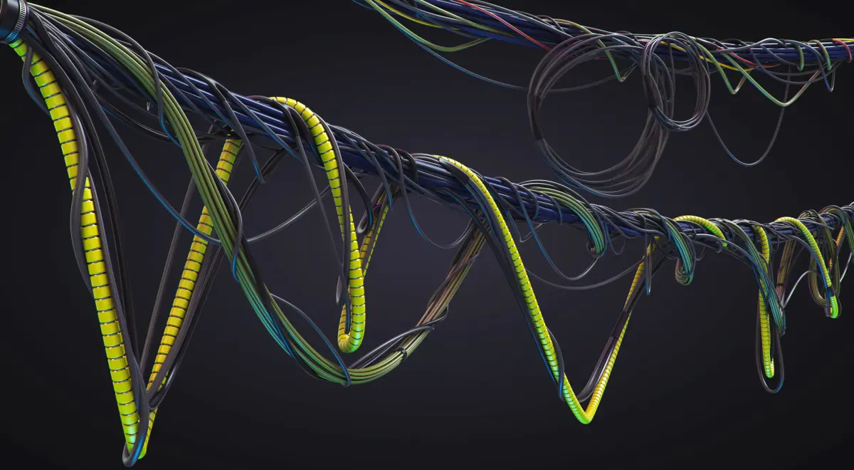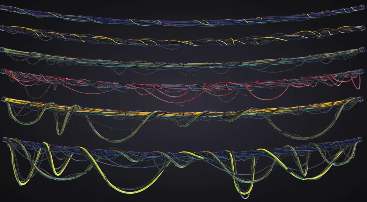 20 OBJ Cables Groups in straight position in quad mesh topology