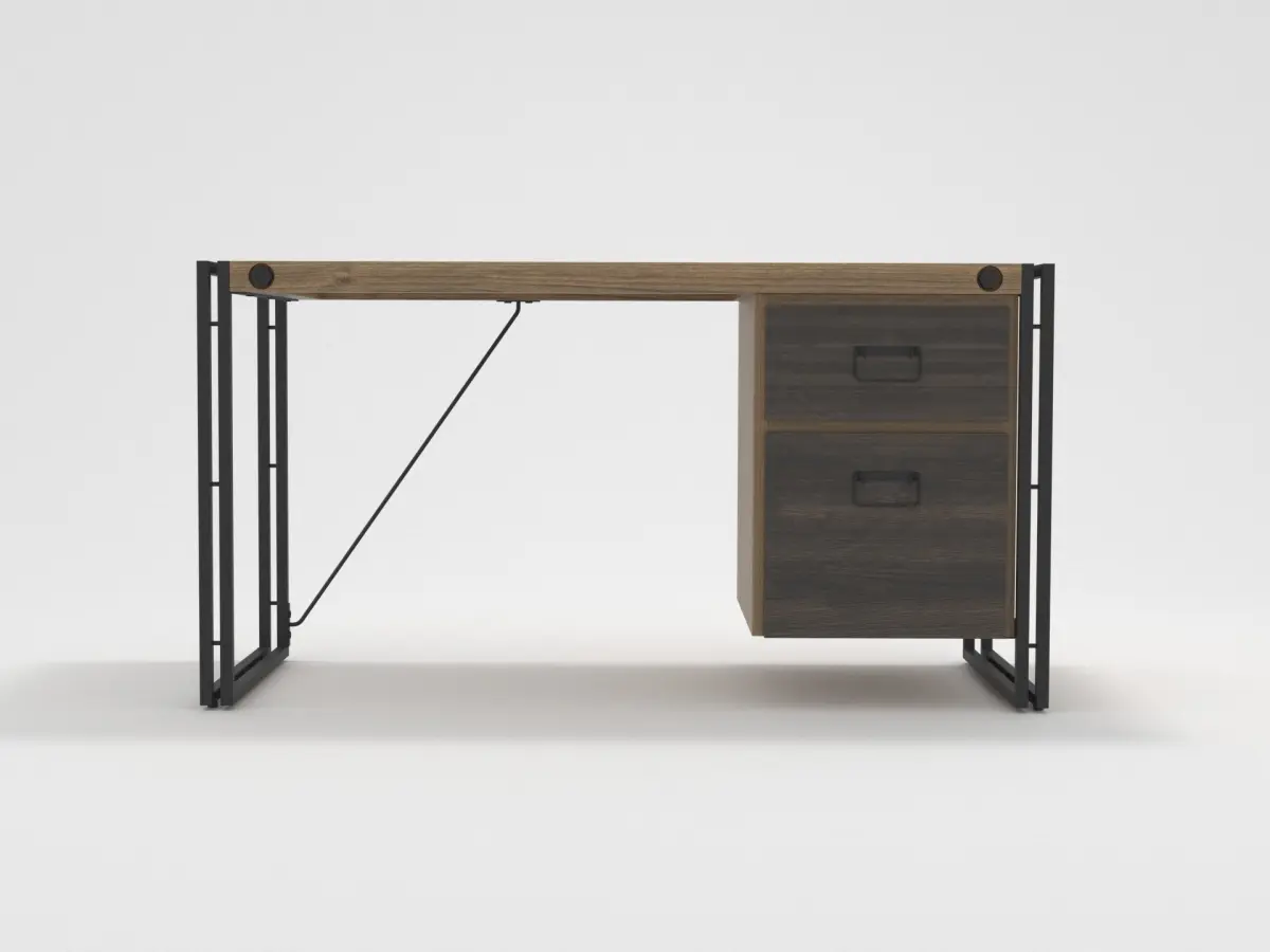 Two side drawers. Metal and wood construction. Brooklyn collection is a piece of contemporary, loft-inspired furniture with industrial undertones. Bright colors and playful accents make for a fun room and a great value. Dimensions: 55W x 23.5D x 29"H or 1400 x 600 x 740 mm Materials: Solid Acacia, Powder Coated Steel