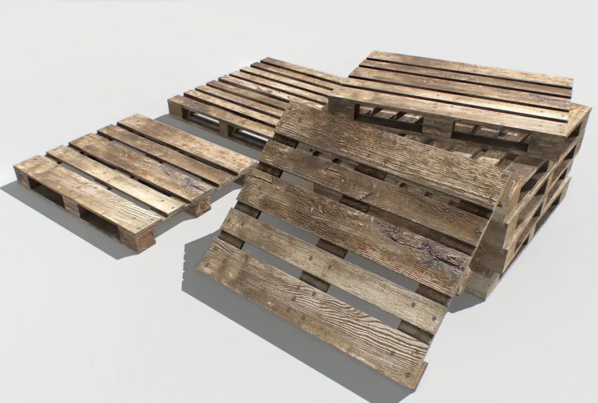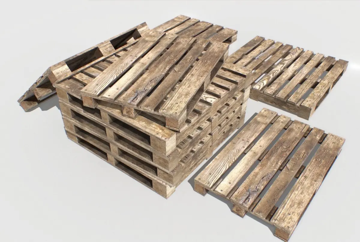 Industrial pallets based in real ones. 3 pallets included: 1200x1200 1200x1000 and 1200x800 cm.