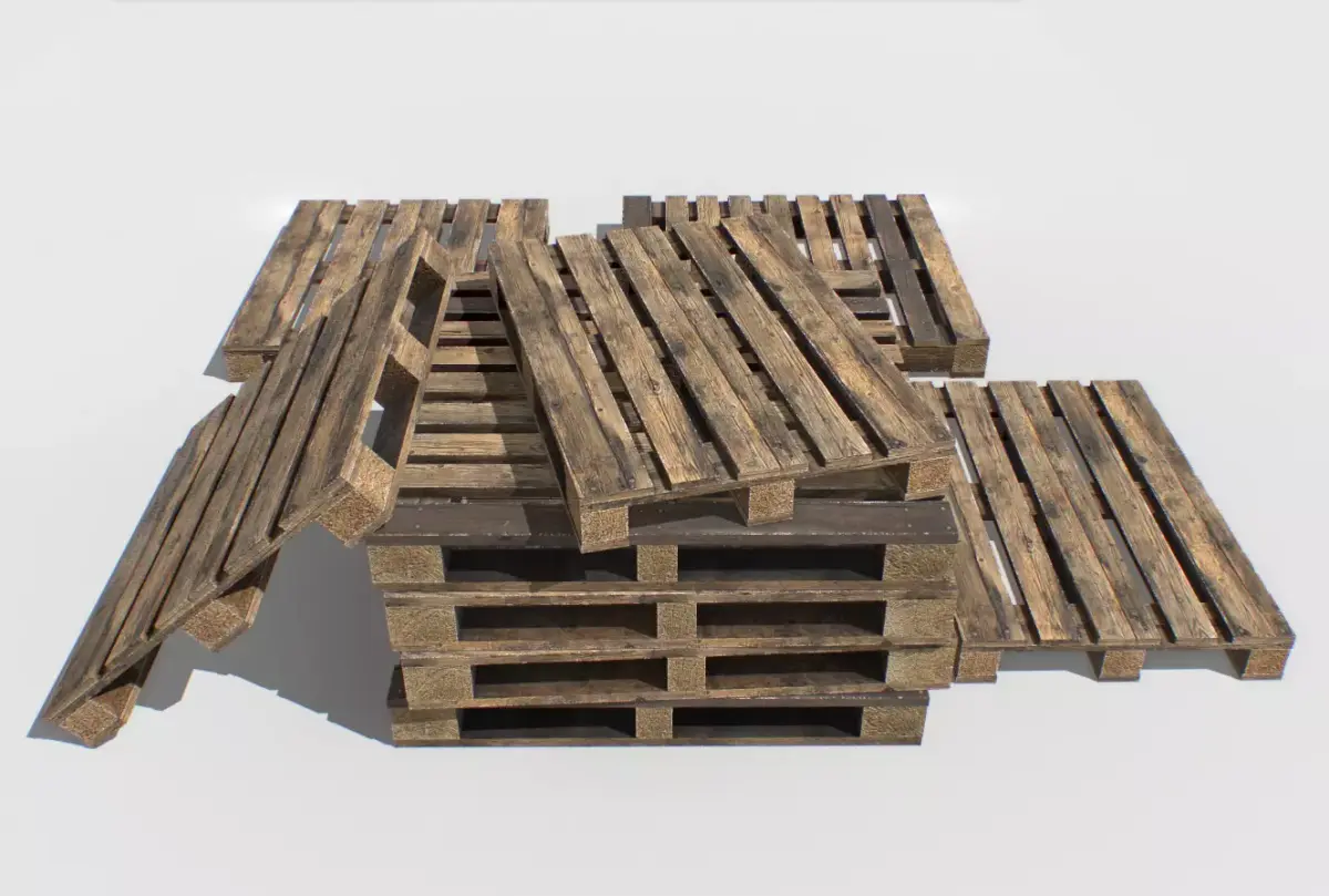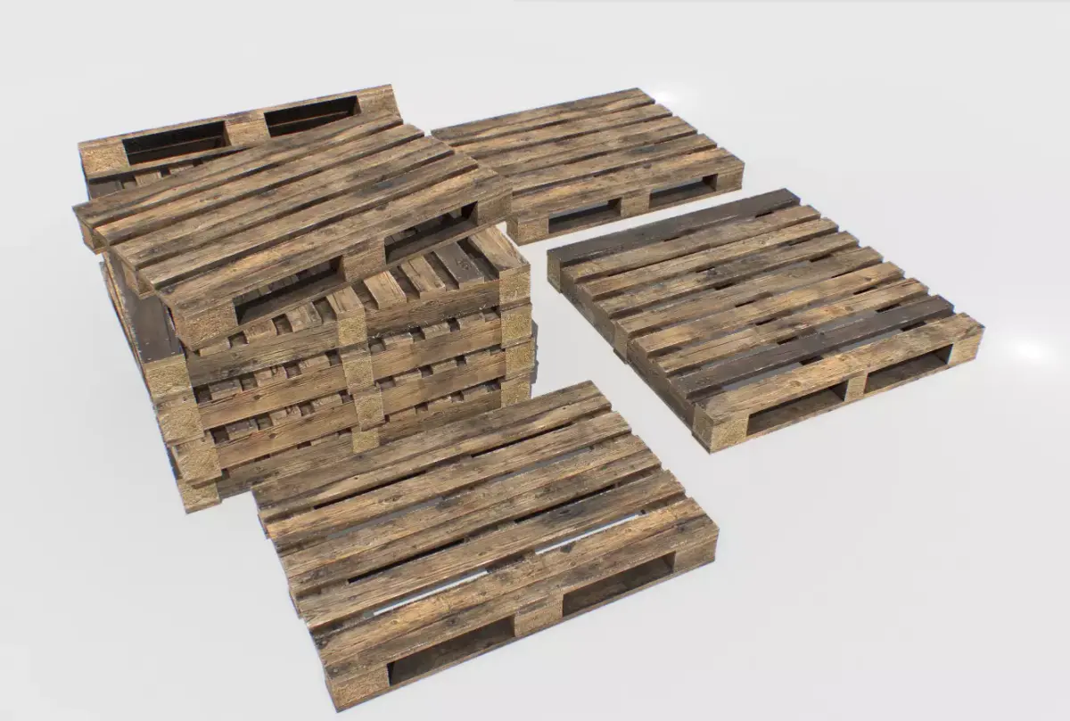 Industrial pallets based in real ones. 3 pallets included: 1200x1200 1200x1000 and 1200x800 cm.