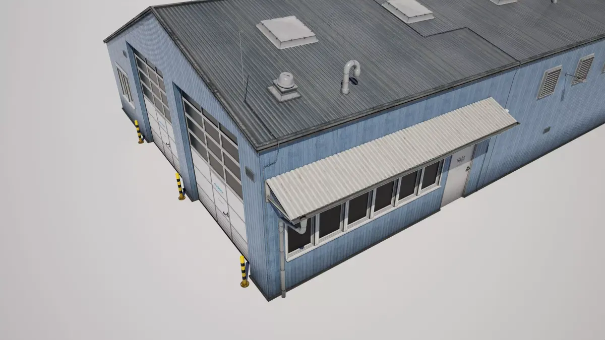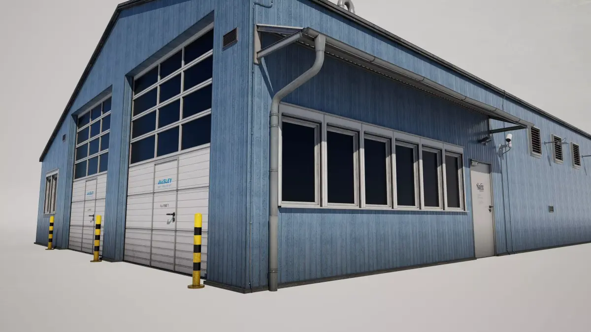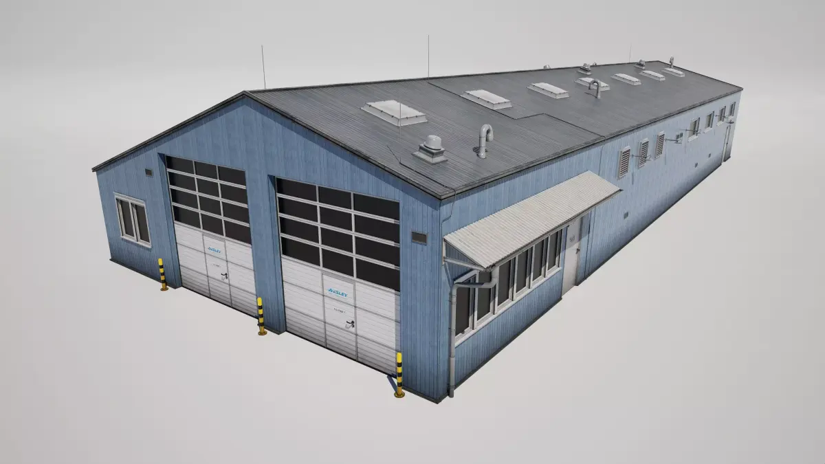 Detailed model of a industrial workshop building garage