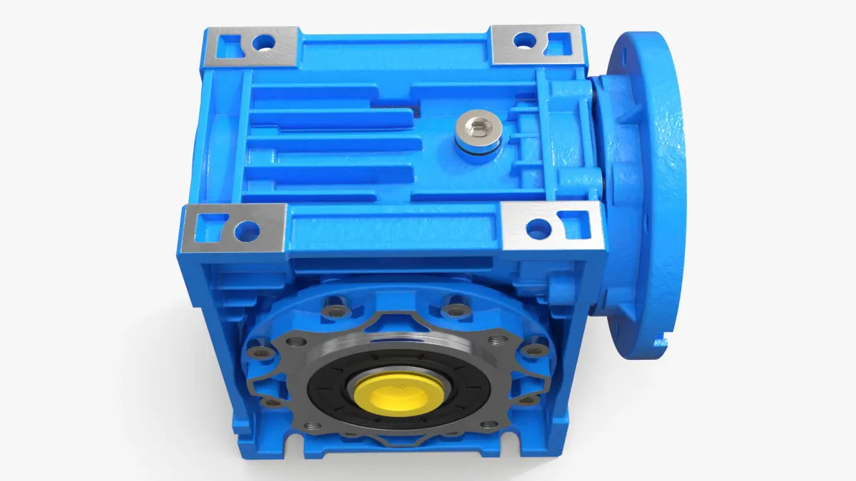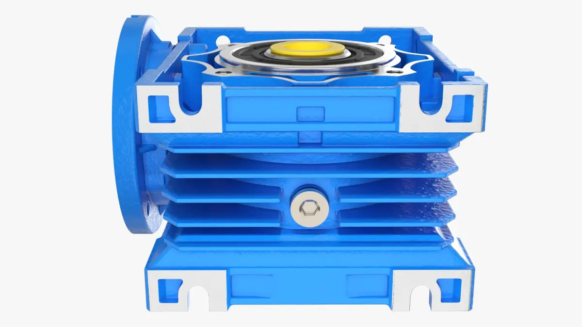 Industrial Worm Gearbox NMRV 040 Blue is a three-dimensional model of industrial machine component designed for mechanical power transmission applications.