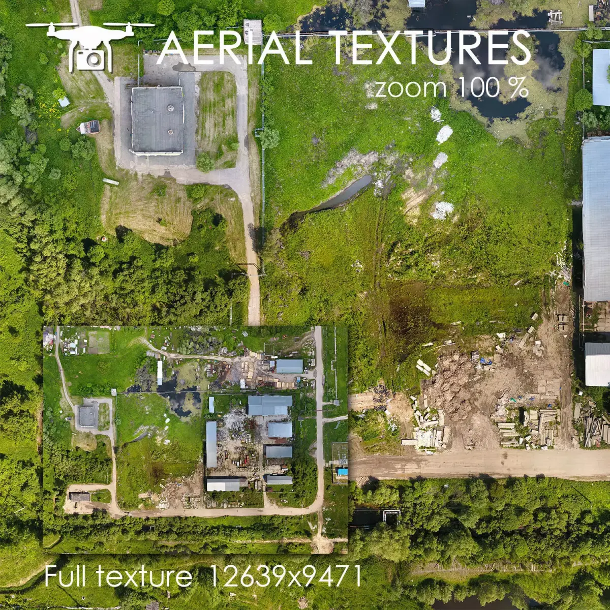 The texture of the terrain is made with a quadcopter at an altitude of 60 meters.The texture is made from hundreds of real photos and combined into one with high resolution. The texture contains many details and features of the landscape.In archive 1. Texture. 2. Max 2014 vray 3. FBX. 4. Mat. 5.MTL