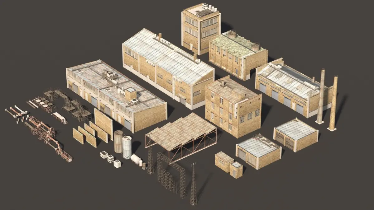 industry yellow brick building kitcollection of assets/ buildings for industry scenes