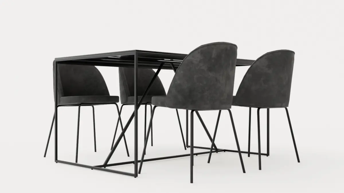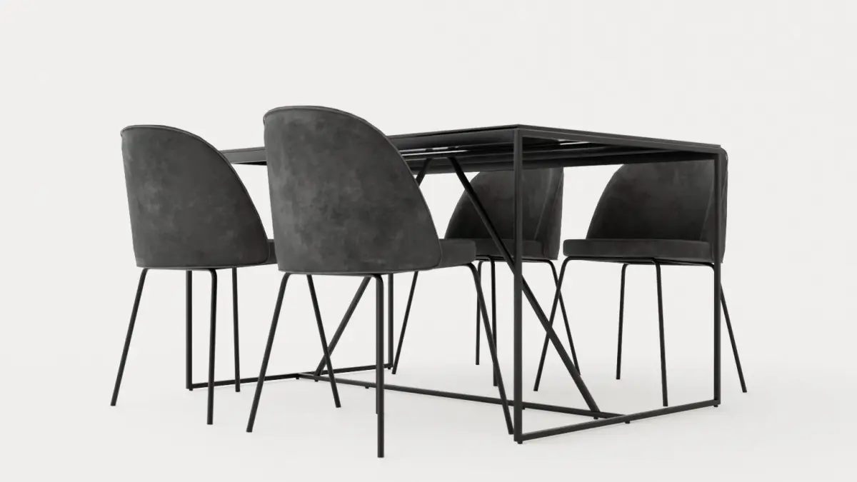 Indy Food Group With 4 Felipe Chair Velvet Black Gray Low-poly 3D model