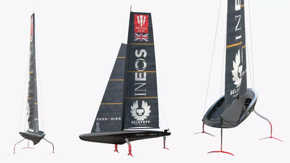 INEOS Britannia Racing Yacht AC75 is a three-dimensional model of America’s Cup 75 racing sailboat, that is a high-performance foiling monohull (hydrofoil) yacht designed for elite sailing competitions.
