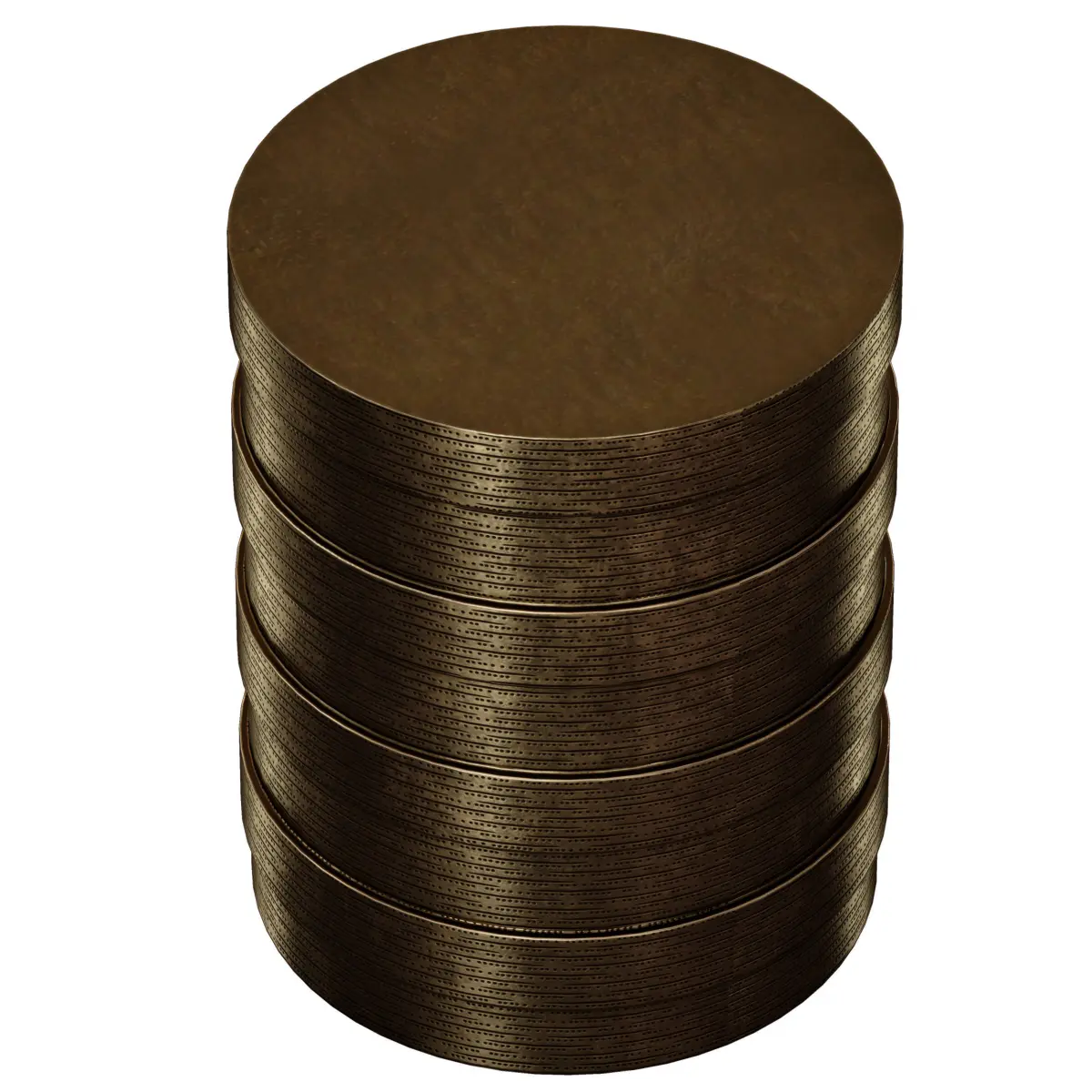Round metal side table in the shape of a barrel, finish - antique brass, can be used as a side table or a table for bathroom decor.