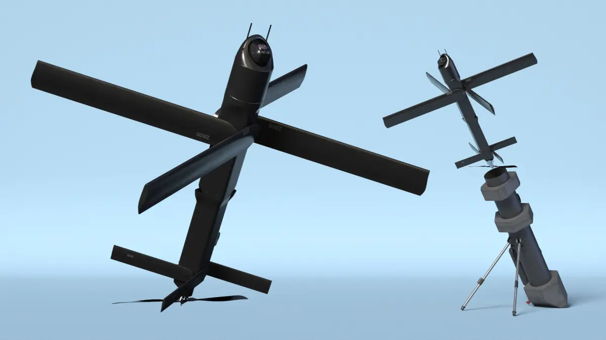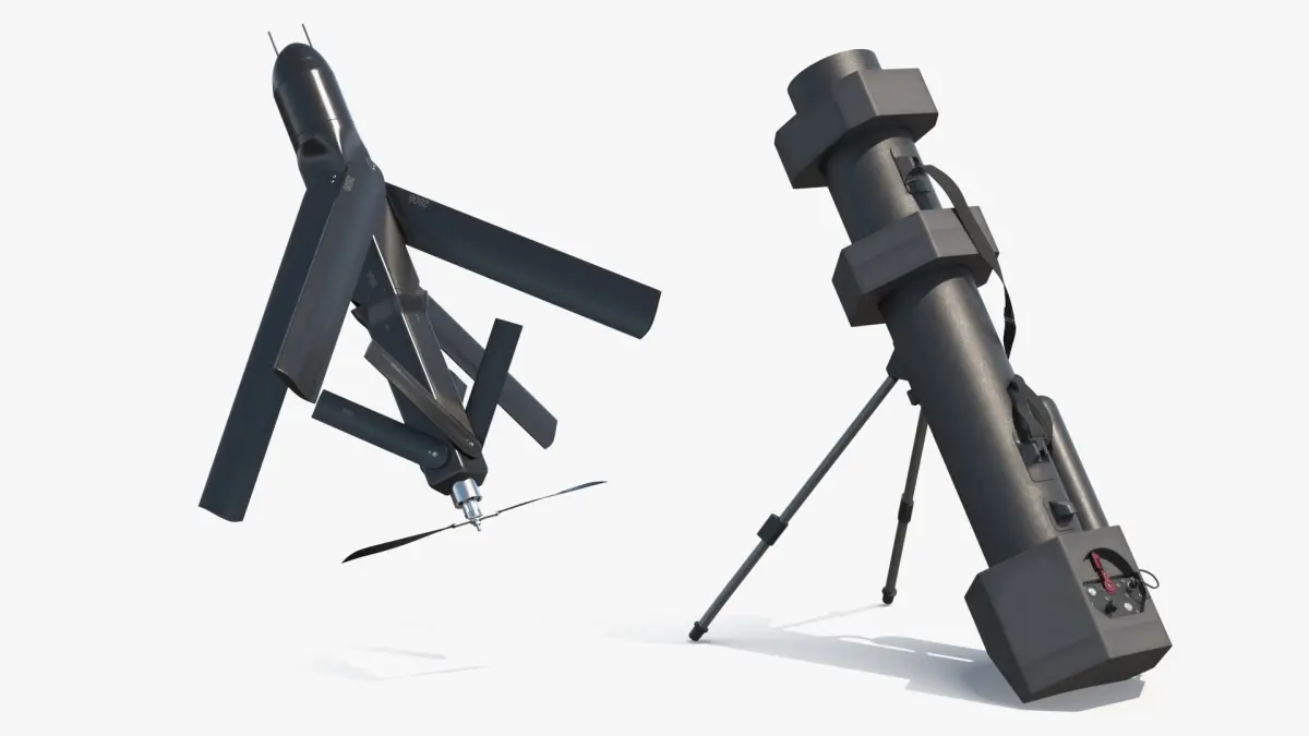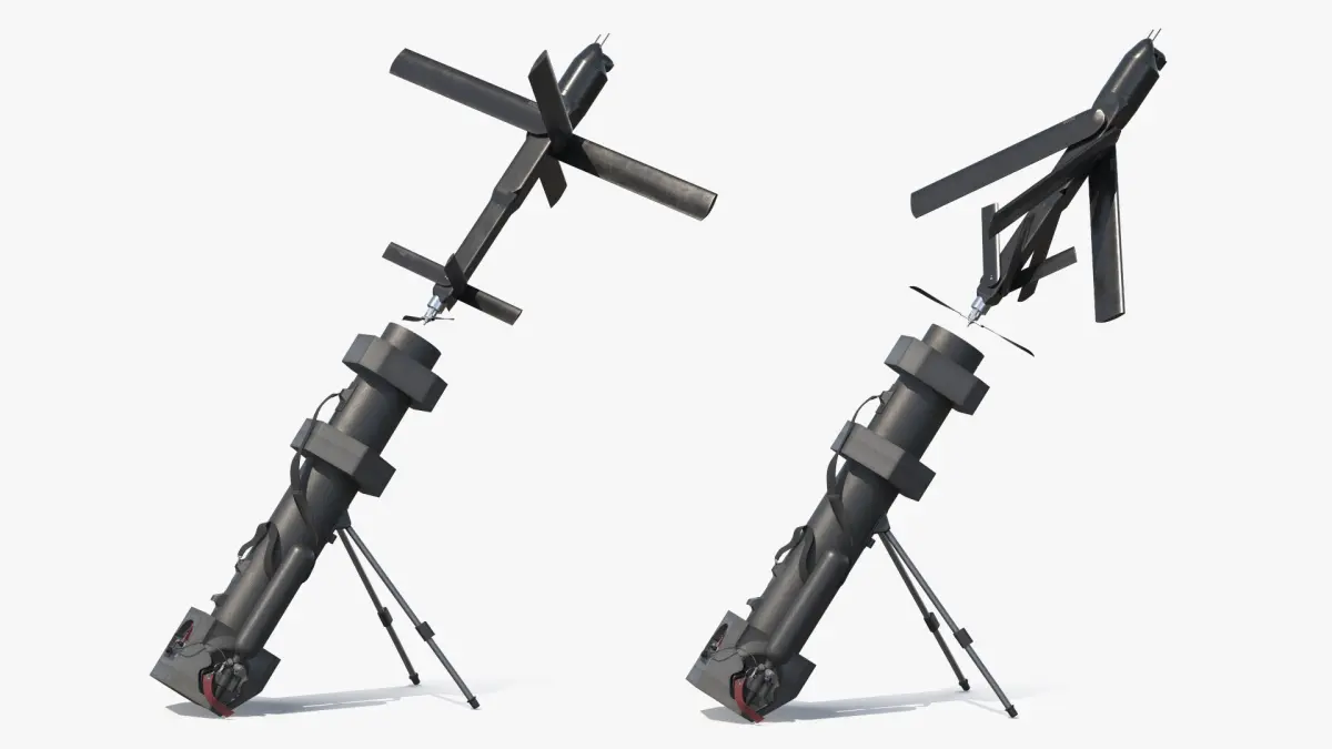 This model showcases a sleek, aerodynamic design equipped with foldable wings and rotors, allowing for easy transport and deployment. It features advanced optics and sensors for enhanced surveillance capabilities. The drone is launched from a portable tube launcher, making it ideal for rapid deployment in various environments.