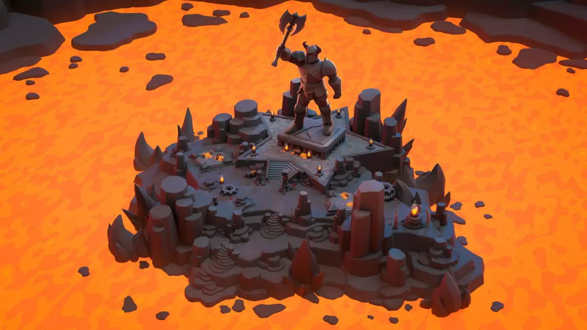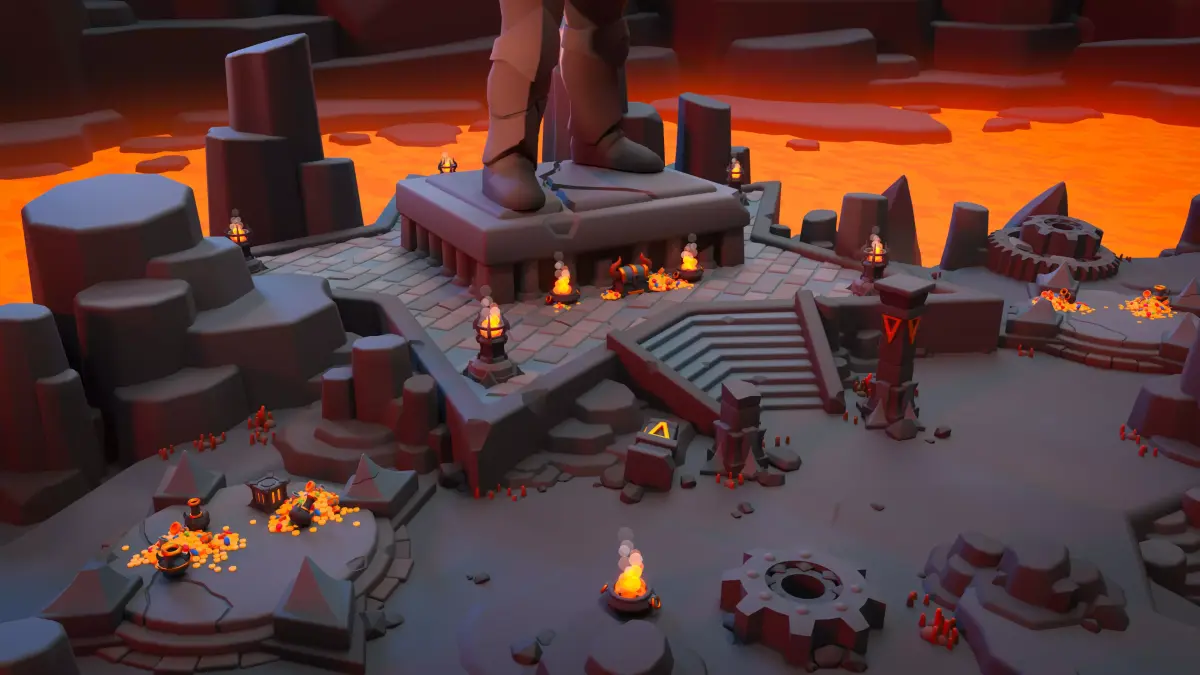 The demo scene is surrounded by lava and rocks along the entire perimeter, which makes it look good from any gameplay perspective.