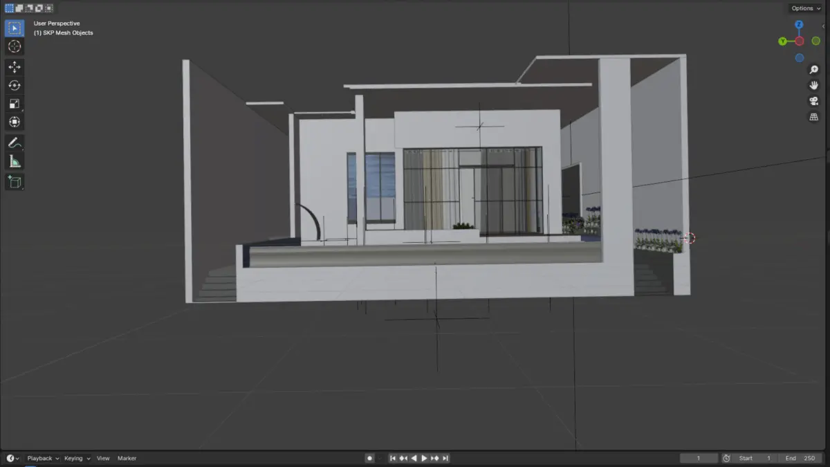 Infinite swimming pool with a seamless water edge for a modern lookWooden decking around the pool for a stylish and natural feelBuilt-in seating area designed for relaxation and comfortWaterfall feature adding movement and a soothing ambianceHigh-quality textures for water, wood, and stone for realistic renderingOptimized for rendering and designed in SketchUp and Blender, this model is ideal for architectural visualization, animations, and VR projects.