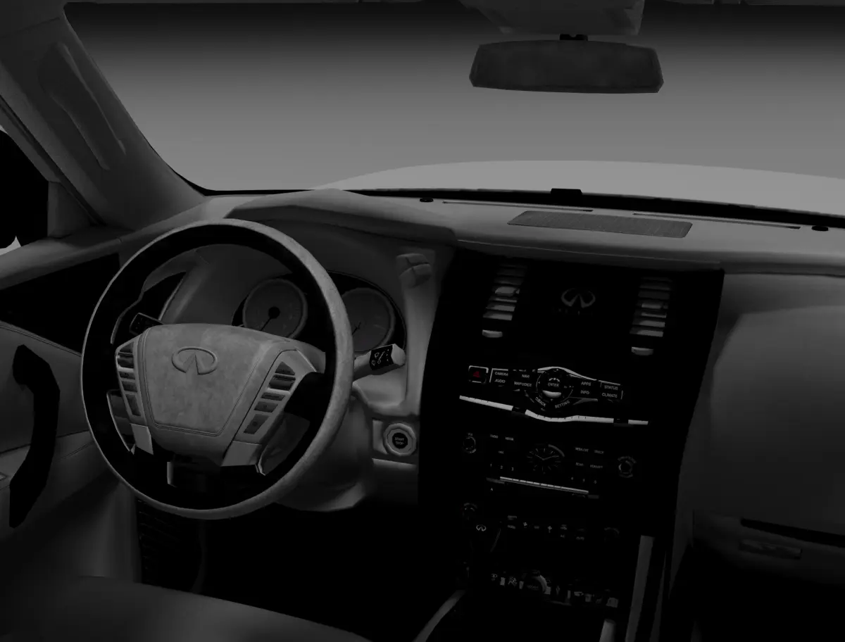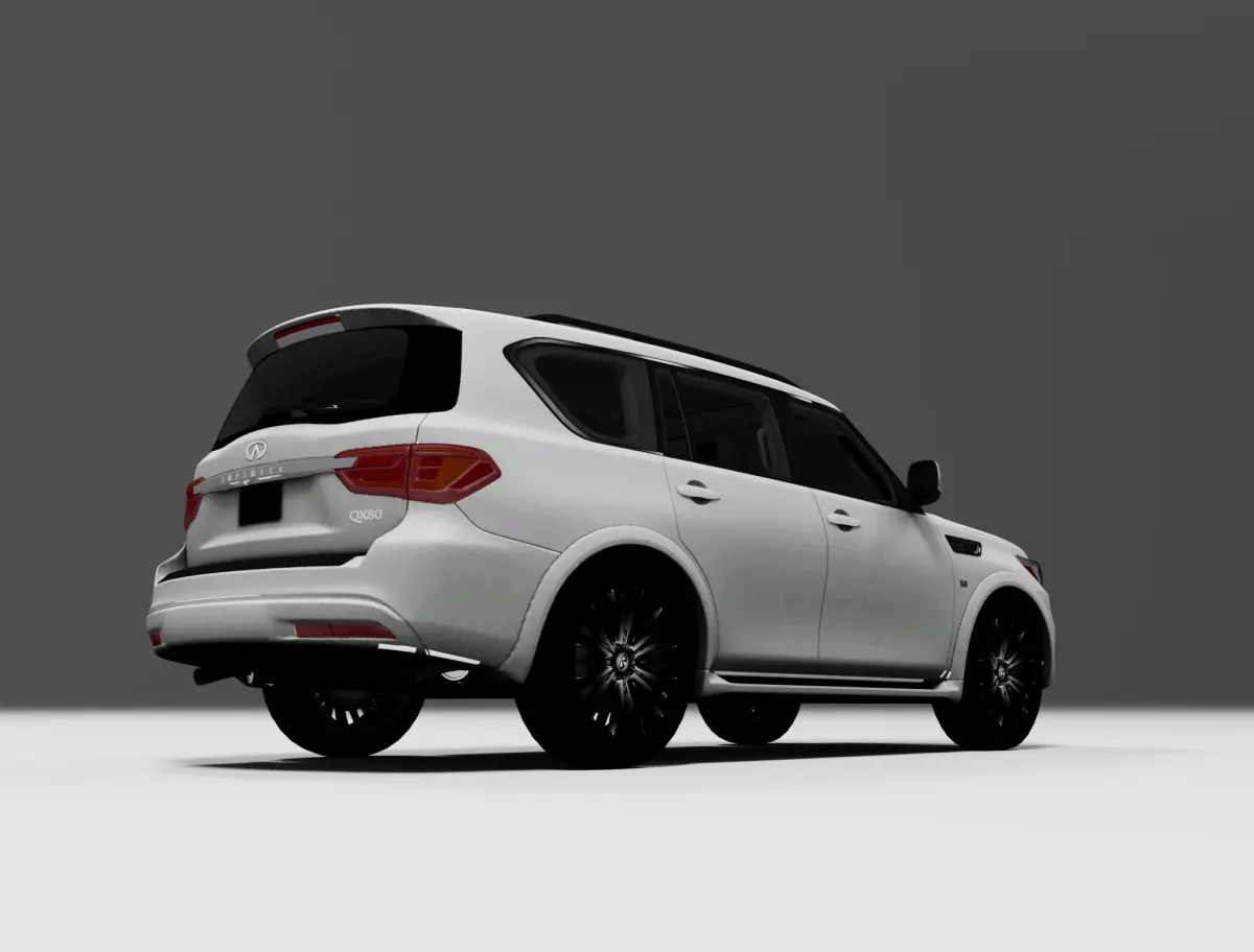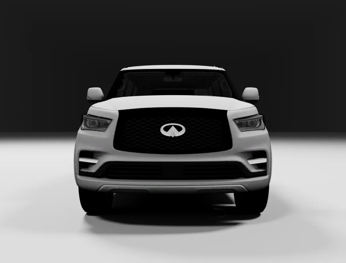 The Infiniti QX80 model includes materials and textures. The model features a fully detailed interior, original textures, and basic Corona Renderer textures. The model does not include the engine or the vehicle’s chassis.