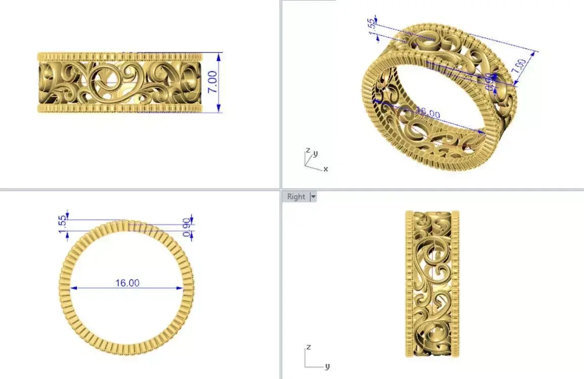This is a digital 3D model for jewelry production. No physical ring or gold product is included.