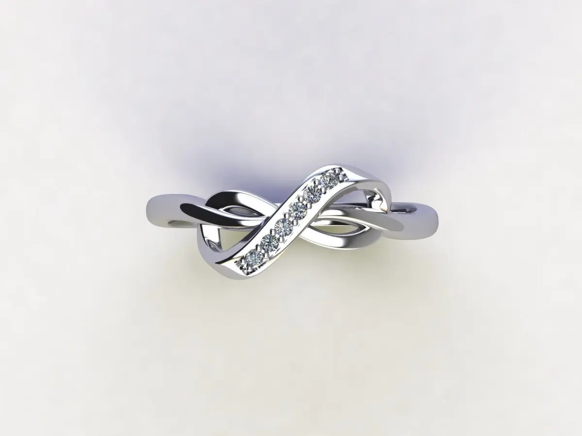 Infinity ring with stone band, perfect for special occasions.Details:Object weight: gold 18 Ky - 3.1g6-round, diamond, 0.01ct - 1.2mm
