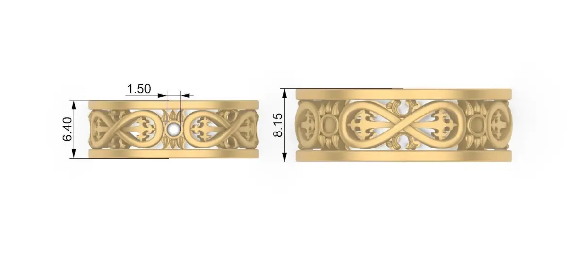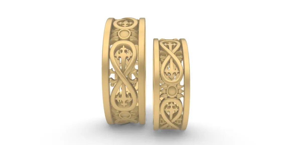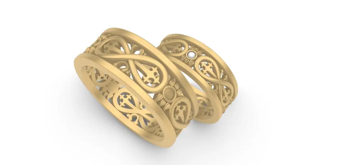 Infinity rings. Ready for printing. The size of the women's ring is 16 mm (approximate weight in silver 3.2 g, in gold - 4 g), men's 20 mm (approximate weight in silver 7 g, in gold - 8.6 g).