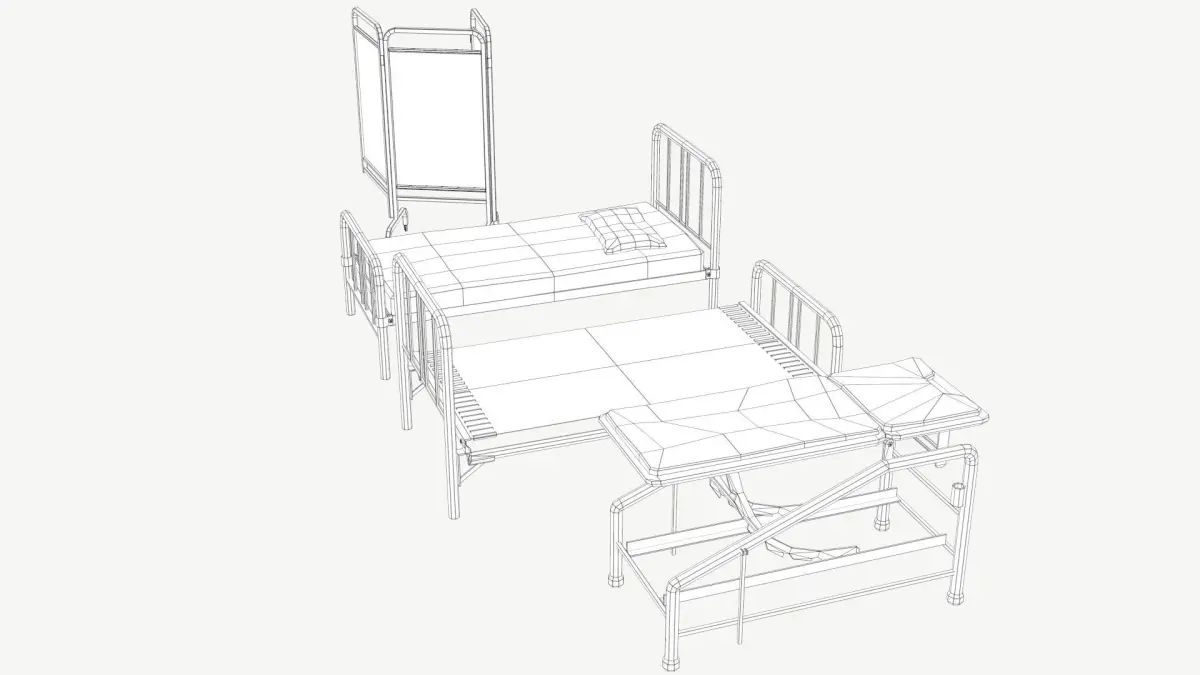 Old, derelict Infirmary set pieces to add character or mood to a game scene.