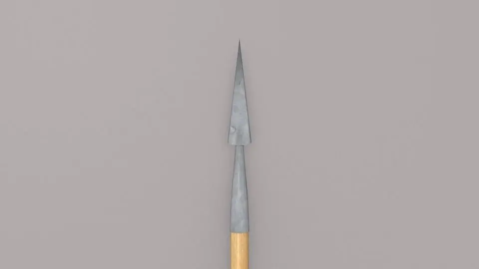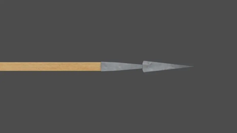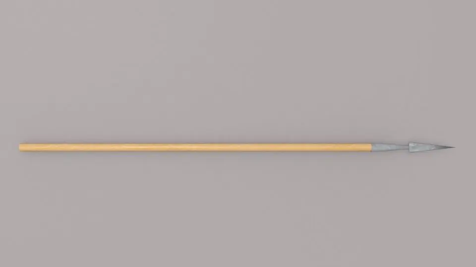 A spear is a pole weapon consisting of a shaft, usually of wood, with a pointed head. The head may be simply the sharpened end of the shaft itself, as is the case with fire hardened spears, or it may be made of a more durable material fastened to the shaft, such as flint, obsidian, iron, steel or bronze. The most common design for hunting or combat spears since ancient times has incorporated a metal spearhead shaped like a triangle, lozenge, or leaf. The heads of fishing spears usually feature barbs or serrated edges. [Wiki]