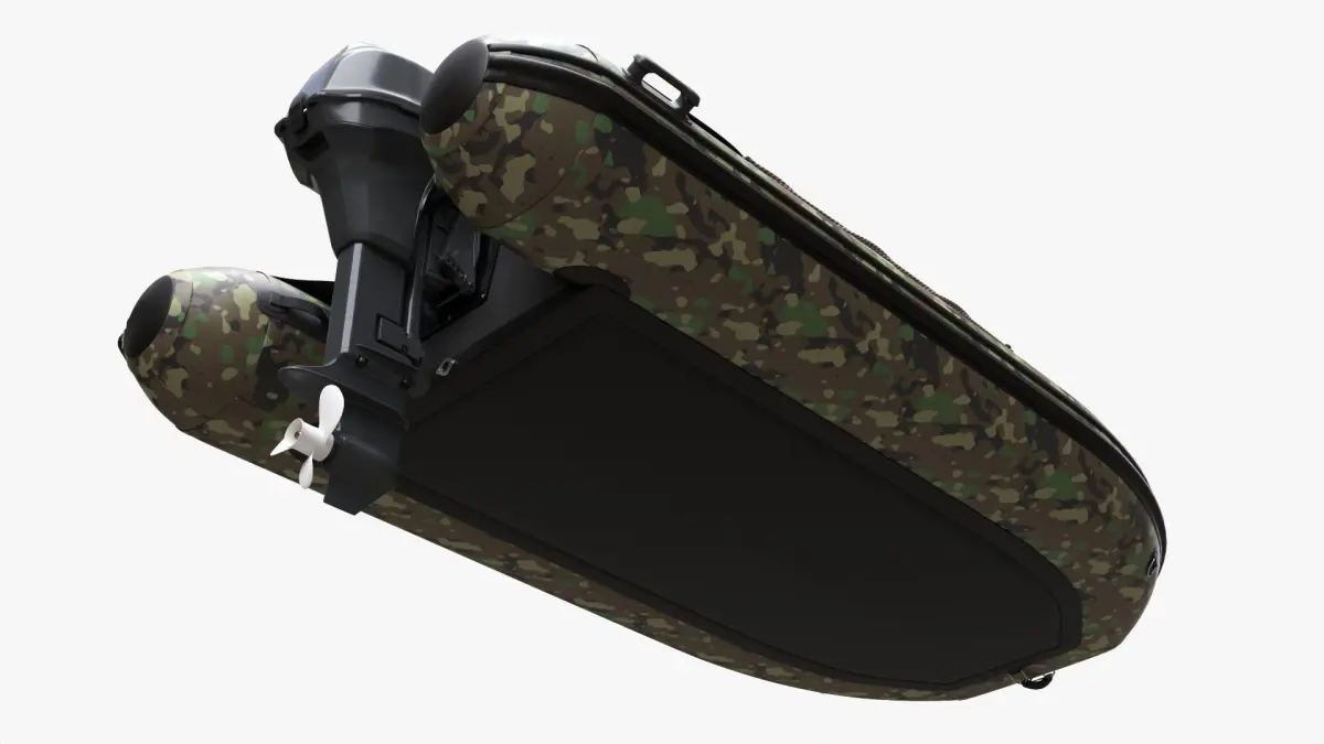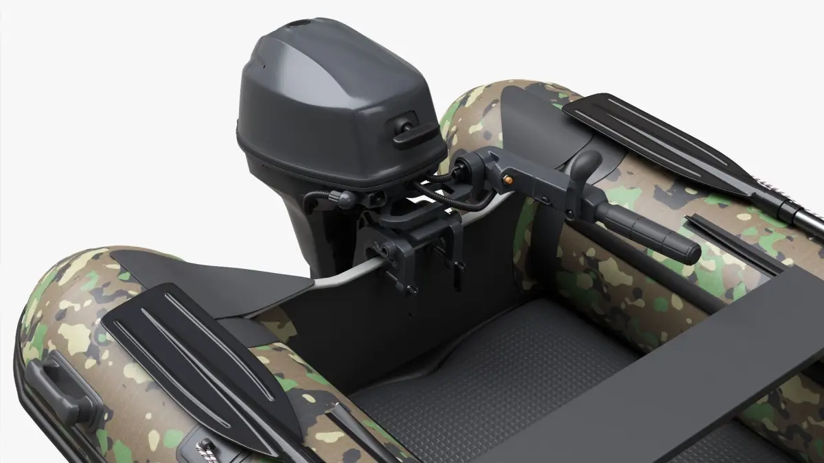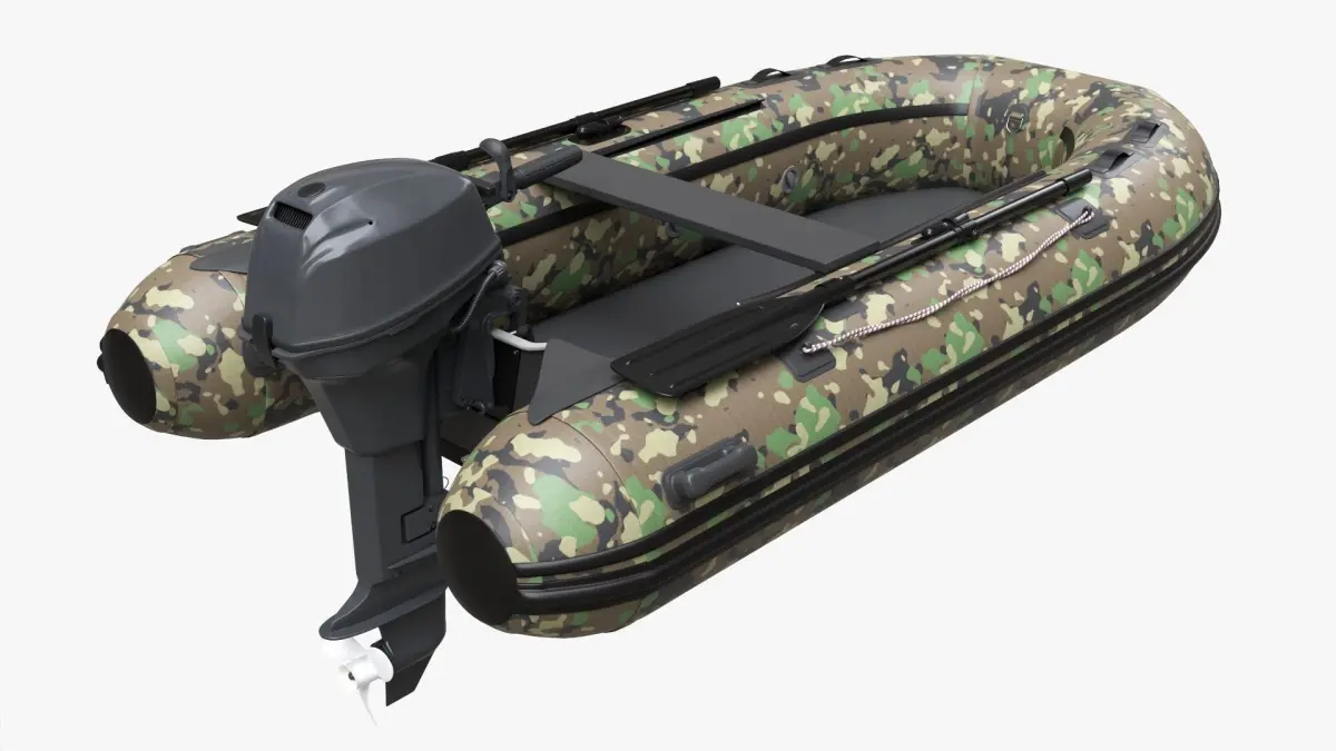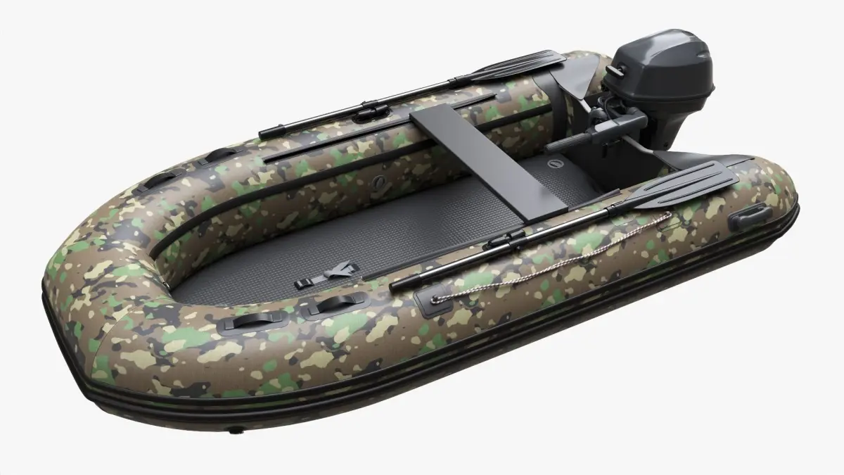 Inflatable Boat 02 camouflage with outboard boat motor 3D model