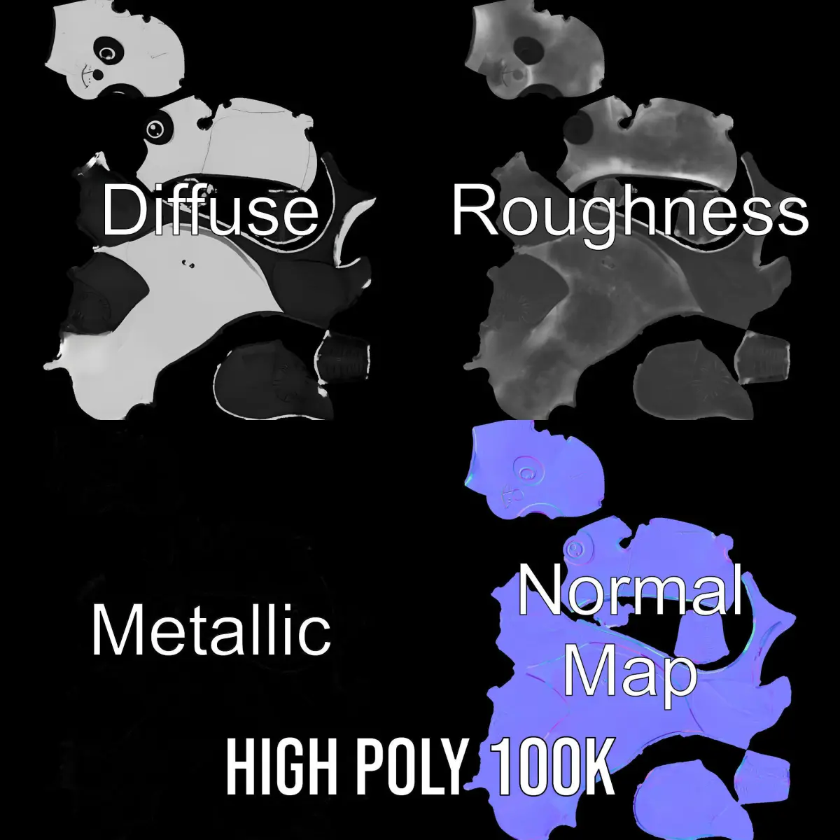 This 3D model pack features an adorable inflatable panda bear toy, perfect for children's environments, animations, or games. Each model has 3 levels of detail: low-poly (1000 triangles) for mobile, middle-poly (10,000 triangles) for environment, and high-poly (100,000 triangles) for production rendering such as 3ds Max, Maya, Cinema4D, Blender, and compatible with game engines Unity and Unreal. It's ideal for use in children's games, animations, or as decorative elements in virtual spaces. The model's textures are PBR, Diffuse, NormalMap, and reflection/roughness/metallic, suitable for any modern rendering engine. All models are accurately unwrapped with no overlapping UVs. All textures are 4096*4096 in size. The first image is the reference used for creating the 3D model. It is important to carefully evaluate the quality of the model by examining the preview images that display the topology and polygonal mesh. These previews (WIRE and WEB 3D Preview) clearly demonstrate how accurately the model matches the original reference and how well the geometry has been executed. If you enjoyed this model, please like and leave a comment.