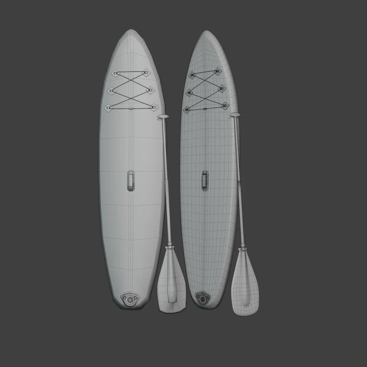 You can find a lowpoly and a highpoly on this archive. It's native from Blender but let me know if you need a different format. This model was made with so many details and realism to any of your rendering projects, you are able to make a close-up renders. -Include: Board - HighPoly Board - LowPoly Paddle - HighPoly Paddle - Lowpoly PNG Texture