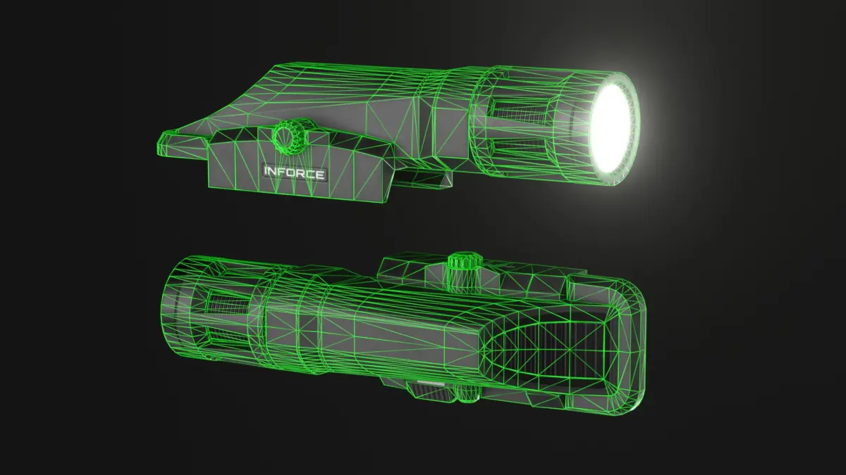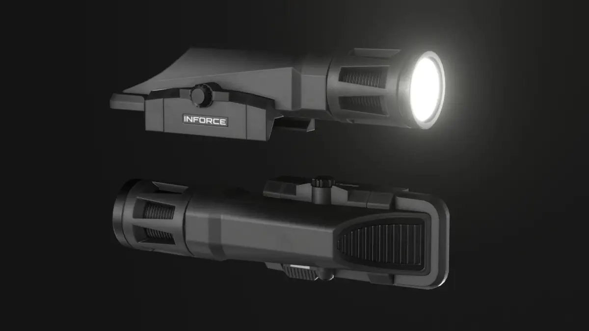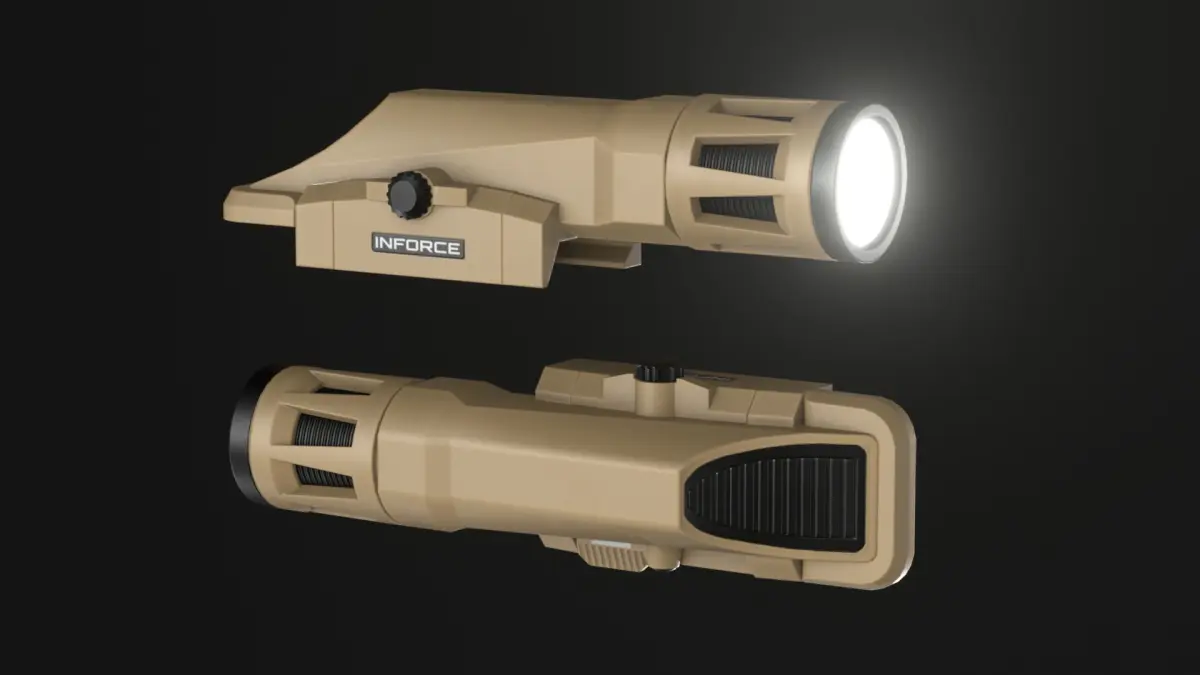 Inforce WMLx weapon mounted light, an attachment that can be mounted on firearms with a Picatinny Rail. *Only the Flashlight is available in this download. The Rifle and other attachments are NOT included. Please note that proportions may not be 100% correct. This model isn't made for 3D printing, it's a low poly asset made for use in games. *