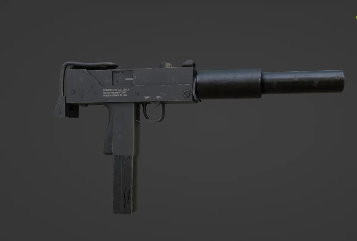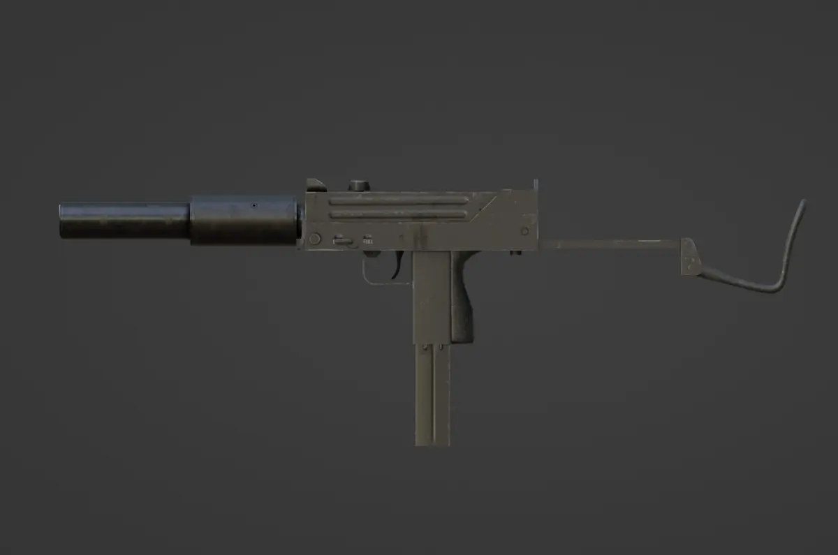 This is a model of the Ingram M10A1, produced by Military Armament Corporation. Colloquially known as the MAC-10. This is the .45ACP model with the Sionics suppressor it was sold with. The suppressor is a seperate mesh and can be hidden or removed. The model is relatively low poly, with the textures all packed into the .blend file. More formats to come soon.