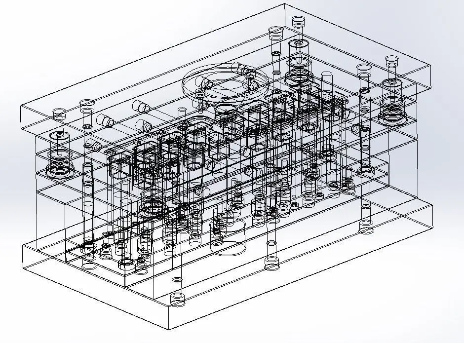 The design of this injection mold is specifically created for the manufacture of a high precision plastic item. This design process considers the appropriate selection of materials, optimization of injection and cooling systems, and efficient demolding mechanisms. It focuses on ensuring uniform and quality production, minimizing defects and cycle times.
