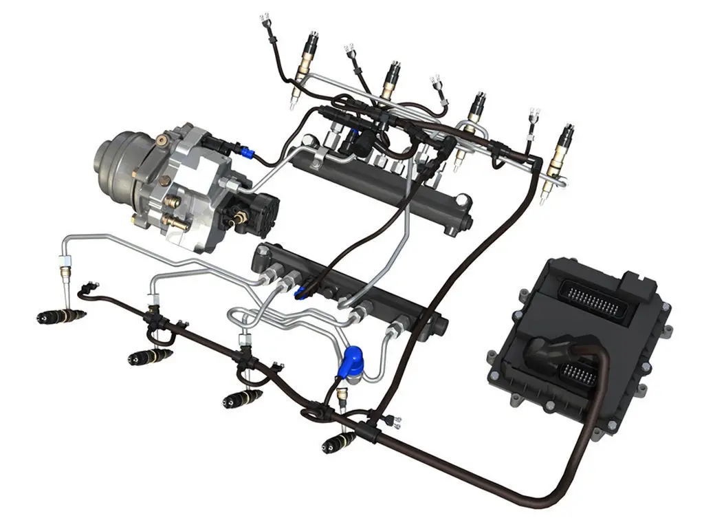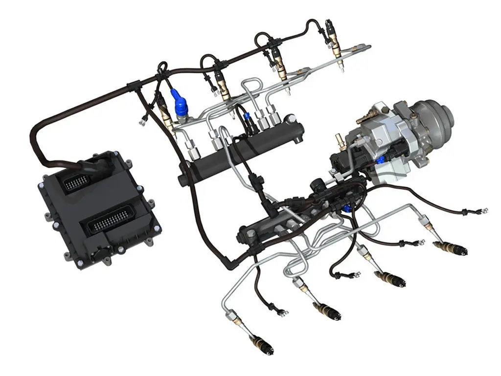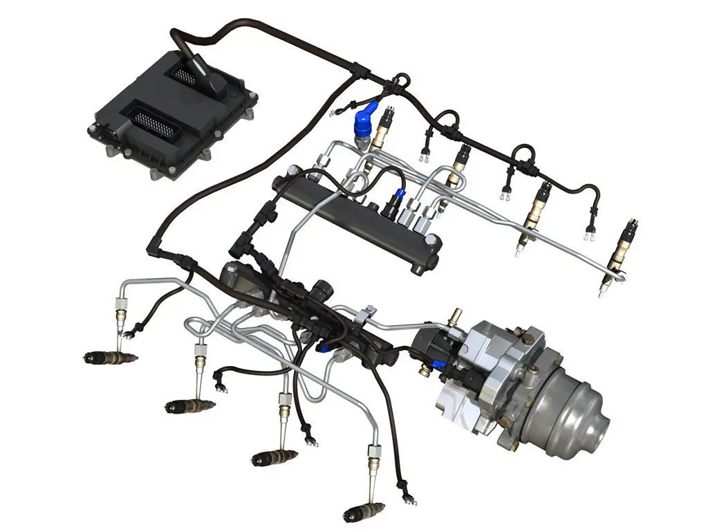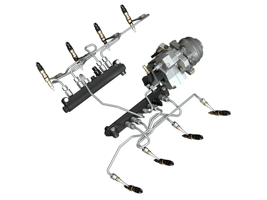 Injection System of a direct-Injection V8 engine in an schematic manner.
