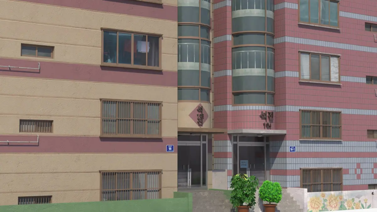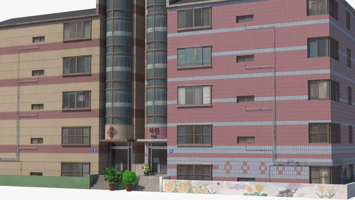 Typical South Korean residential buildings.