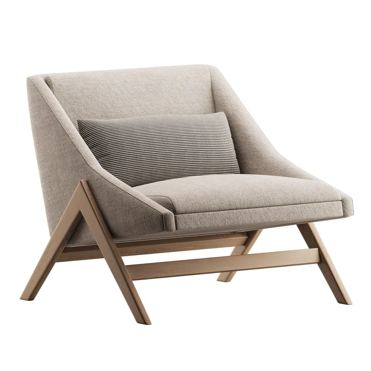 Name: INK IVY Accent Chair Modern MidType: modelFormat: 3Ds Max 2016Export: FBX, OBJRender: Corona (10)Polys: 26699Verts: 27076Matclasses: CoronaLegacyMtlUnits: MillimetersDimension: 837.66 x 873.57 x 766.63Description: The INK IVY Accent Chair is a stylish and modern mid-century inspired piece, defined by its unique boomerang-shaped wooden frame and recessed arms. Upholstered in a soft neutral grey fabric, it features a matching striped lumbar cushion for extra comfort and visual interest. The angular solid wood legs create a bold silhouette that suits contemporary, Scandinavian, or vintage-themed interiors. Ideal for living rooms, reading nooks, or hospitality settings, this high-quality 3D model is rendered in Corona for photorealistic interior visualizations.