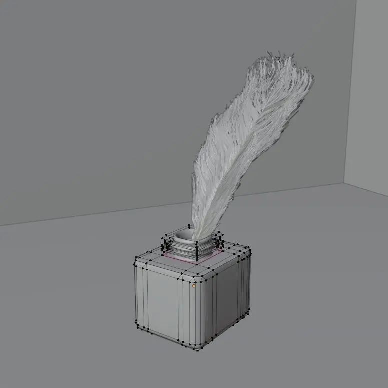 Inkwell with feather this is a wonderful object of decoration of ancient locations. The feather is made with particles. There are no additional textures.