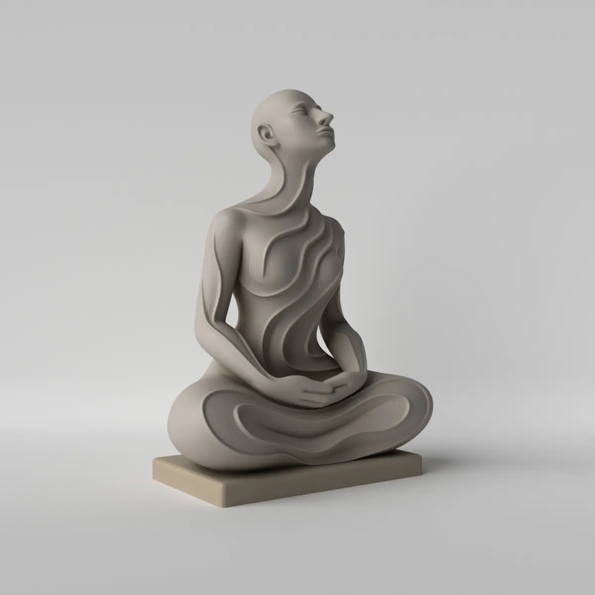 A minimalist sculpture representing a figure in a meditation pose, symbolizing inner peace, balance, and serenity. With smooth lines and a clean design, this piece is perfect for modern decor, yoga spaces, meditation areas, studios, or rooms that seek a calm and harmonious energy. Optimized for 3D printing, easy to print and display.