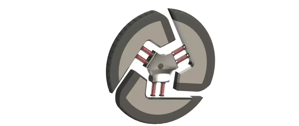 This is a professional CAD model of an innovative tire with integrated damper system, created in SolidWorks.It is designed for engineering simulations, product development, and educational purposes.
