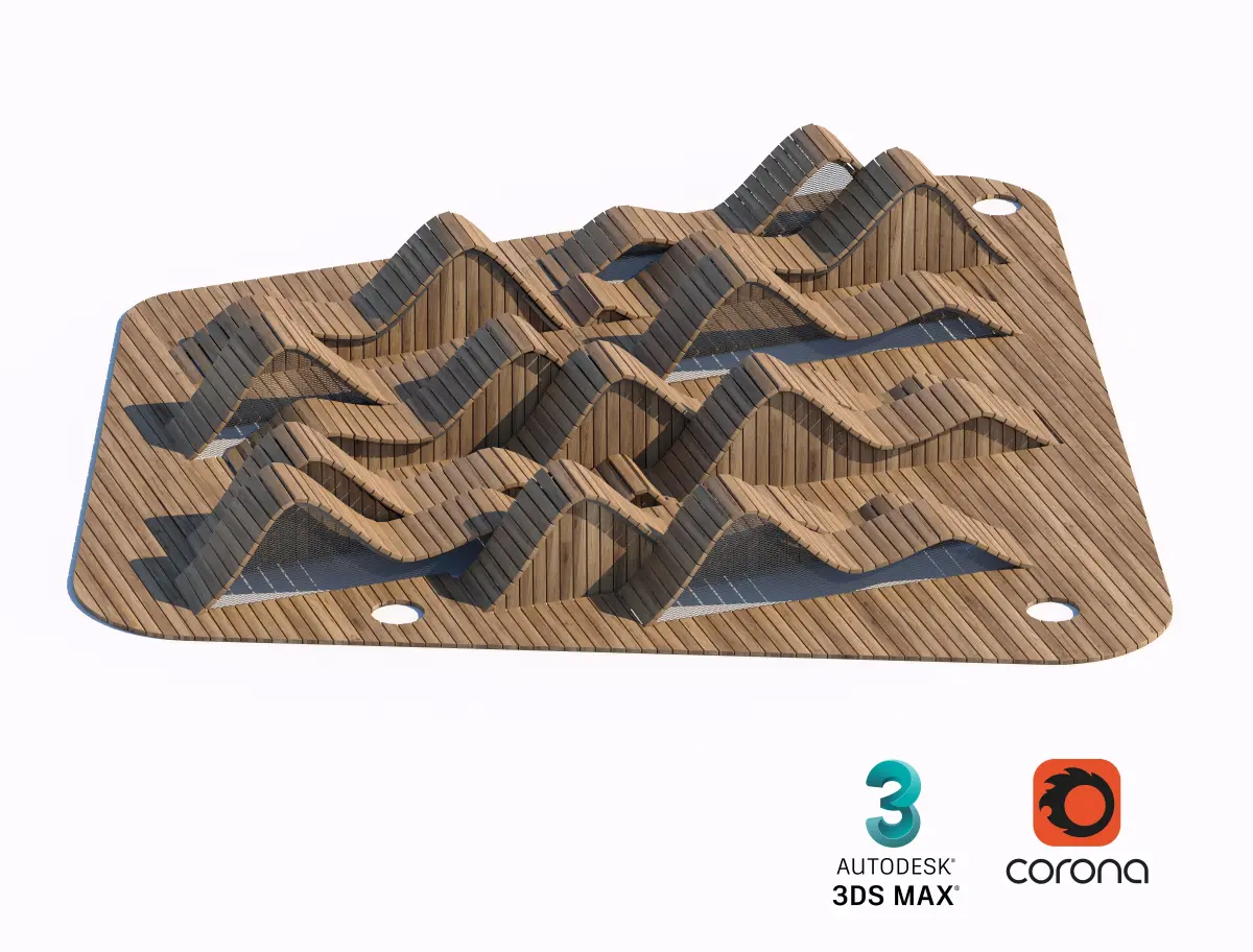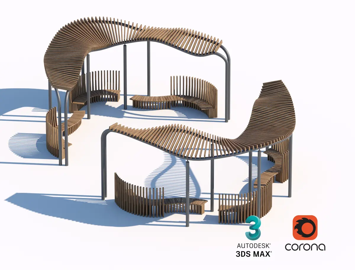 A collection of creative wooden structures designed for play and relaxation in parks and urban spaces. These multifunctional installations provide unique areas for community interaction, play, and relaxation.
