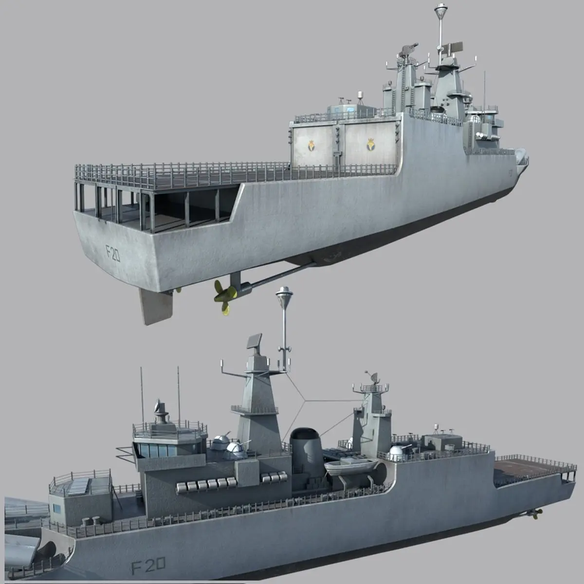 This is the model of INS Godavari frigate. INS Godavari (F20) was the lead ship of her class of guided-missile frigates of the Indian Navy.