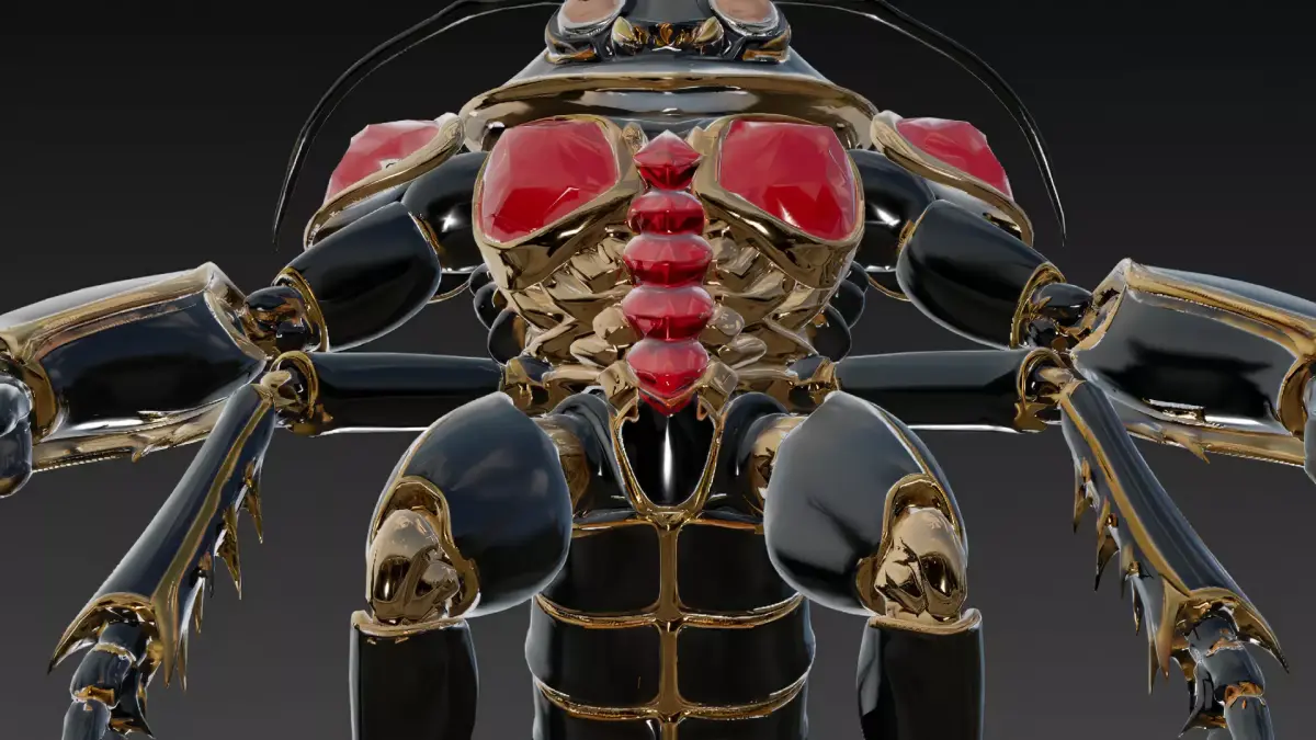 Description:A striking 3D model of an insect carapace demon, blending demonic presence with hardened exoskeleton elements.
