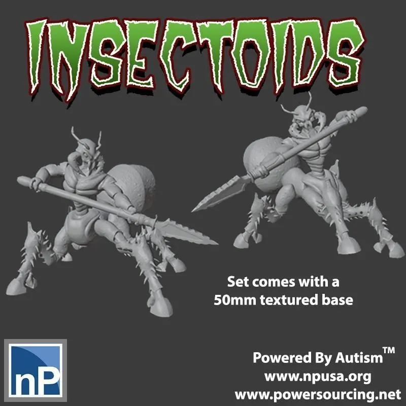 Four large insectoid warriors for your tabletop fantasy adventure games. Each is in a different pose and comes with a textured base.