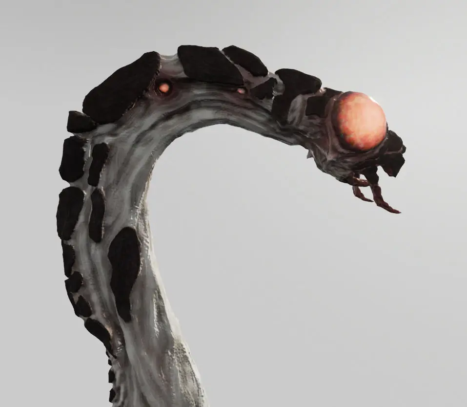A model of an insect or maggot like alien. It is meant to look like a tunneling creature that would surface to catch unsuspecting pray.Rig is strait forward and easily used if you need to make more animations. Re-topologized with good topology, Huge well unwrapped textures with resolutions of: 2048x2048 - 4096x4096, great for games, renders and animations.TEXTURES: Diffuse, Normal, Specular, Ambient Occlusion, Displacement, Emissive.