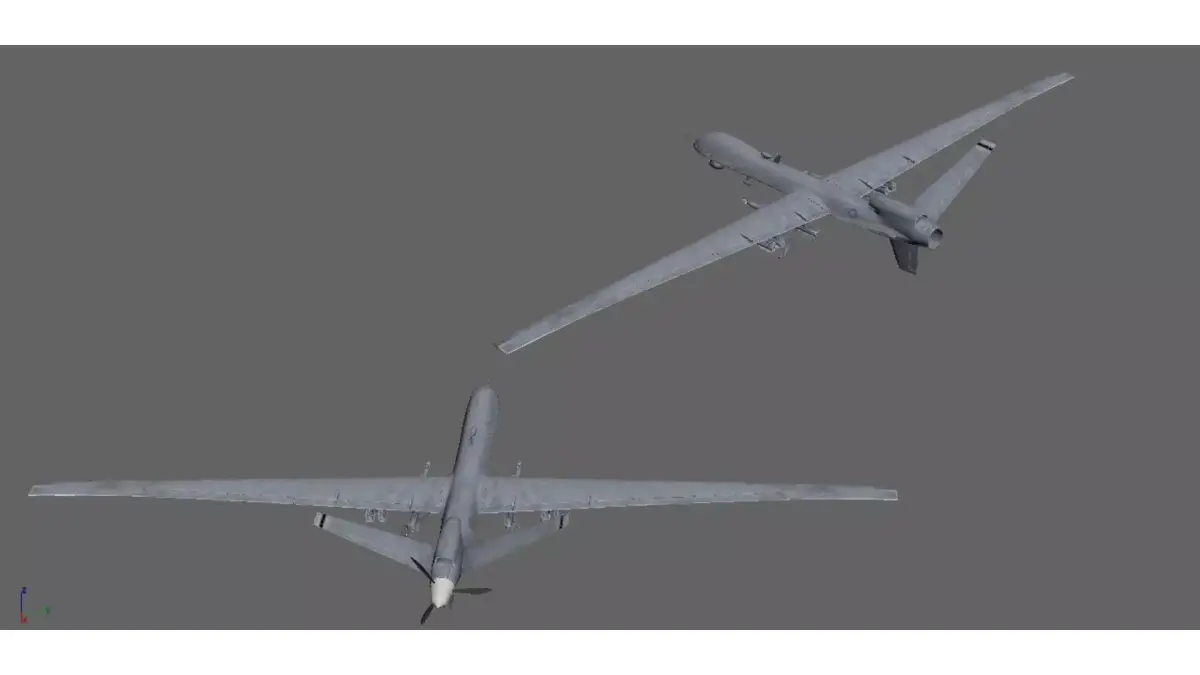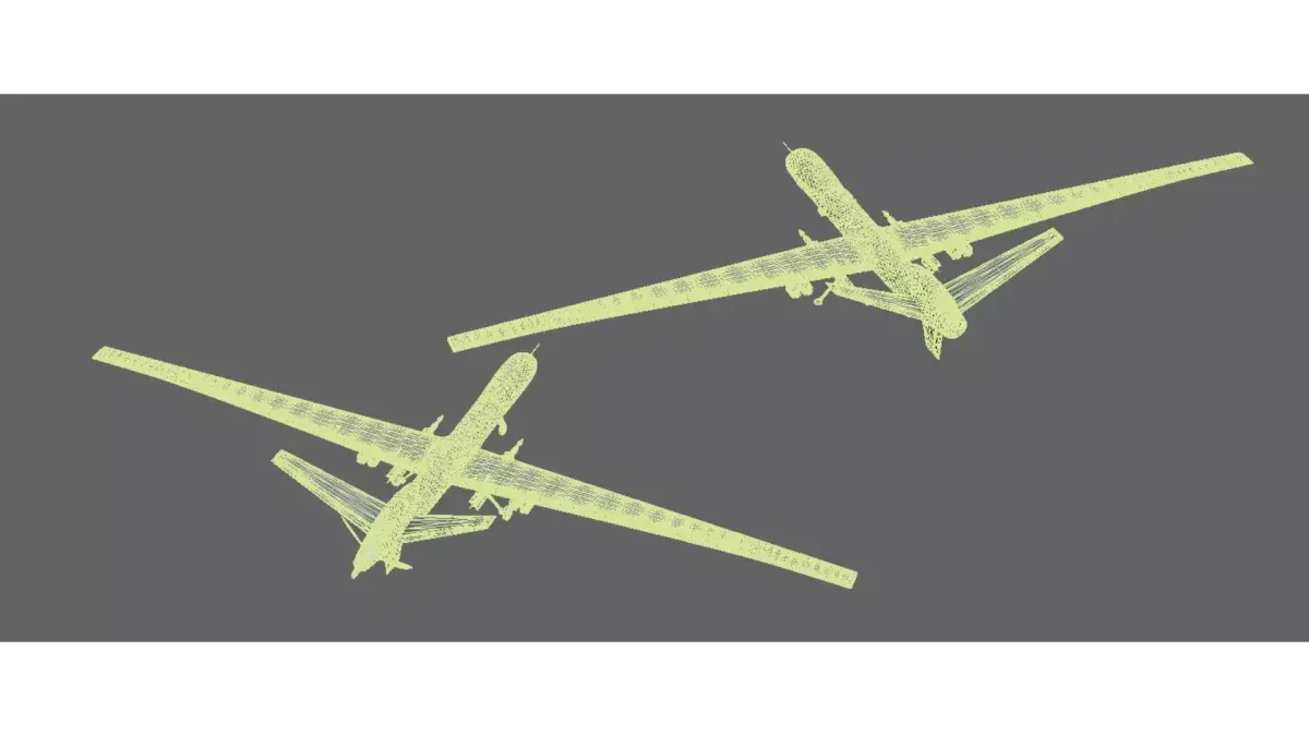 These are two military reconnaissance/reconnaissance integrated unmanned aerial vehicle models, belonging to professional level military aviation equipment:Design features: Adopting a long endurance fixed wing layout, the fuselage is light gray (a commonly used low visibility color scheme for military use), the wings are wide and have a high aspect ratio, suitable for long-distance flight; The fuselage is equipped with mission payloads (possibly missiles or reconnaissance equipment), and the landing gear is retractable, which is in line with the combat/reconnaissance positioning of military drones.Functional positioning: Belonging to mid to high altitude long endurance unmanned aerial vehicles, it is mainly used for military tasks such as reconnaissance, surveillance, and strike. It has the ability to stay in the air for a long time and engage in long-range combat, and is a commonly used unmanned combat platform in modern military operations.Scenario and attributes: It is not a consumer grade device, but a professional equipment used in the military field. The core scenarios are battlefield reconnaissance, target strike, intelligence collection, etc.1:This file has no type of protection. You can reuse scenes, rendering settings, lighting, and materials to evoke the design meaning and imagination of this project, making the future a reality.2: Thank you for your feedback. Please give me more guidance