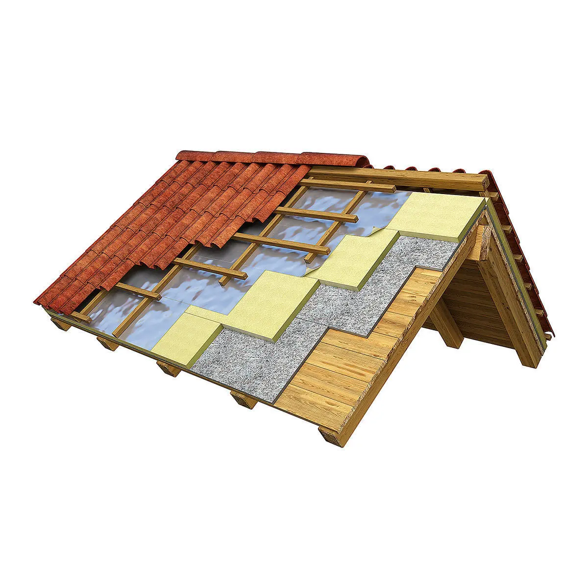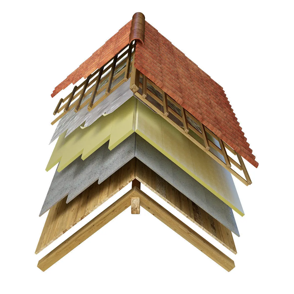 Highly detailed 3D model of an insulated roof section with exploded layers. Modelled in Blender 2.77 with materials and high resolution diffuse, normal and specular maps, for accurate rendering. Ready to be rendered with Cycles as shown in the pictures. This model require a 2.77 Blender built with Cycles render engine. Different builts can give a little different results. This model has a clean quads based geometry and it is exported in .3ds, .dae, .fbx and .obj. The model can be subdivided according to your needs or used as it is for realtime renderings. Shaders are created and usable only inside Blender, but materials and textures are still presents in the other formats.