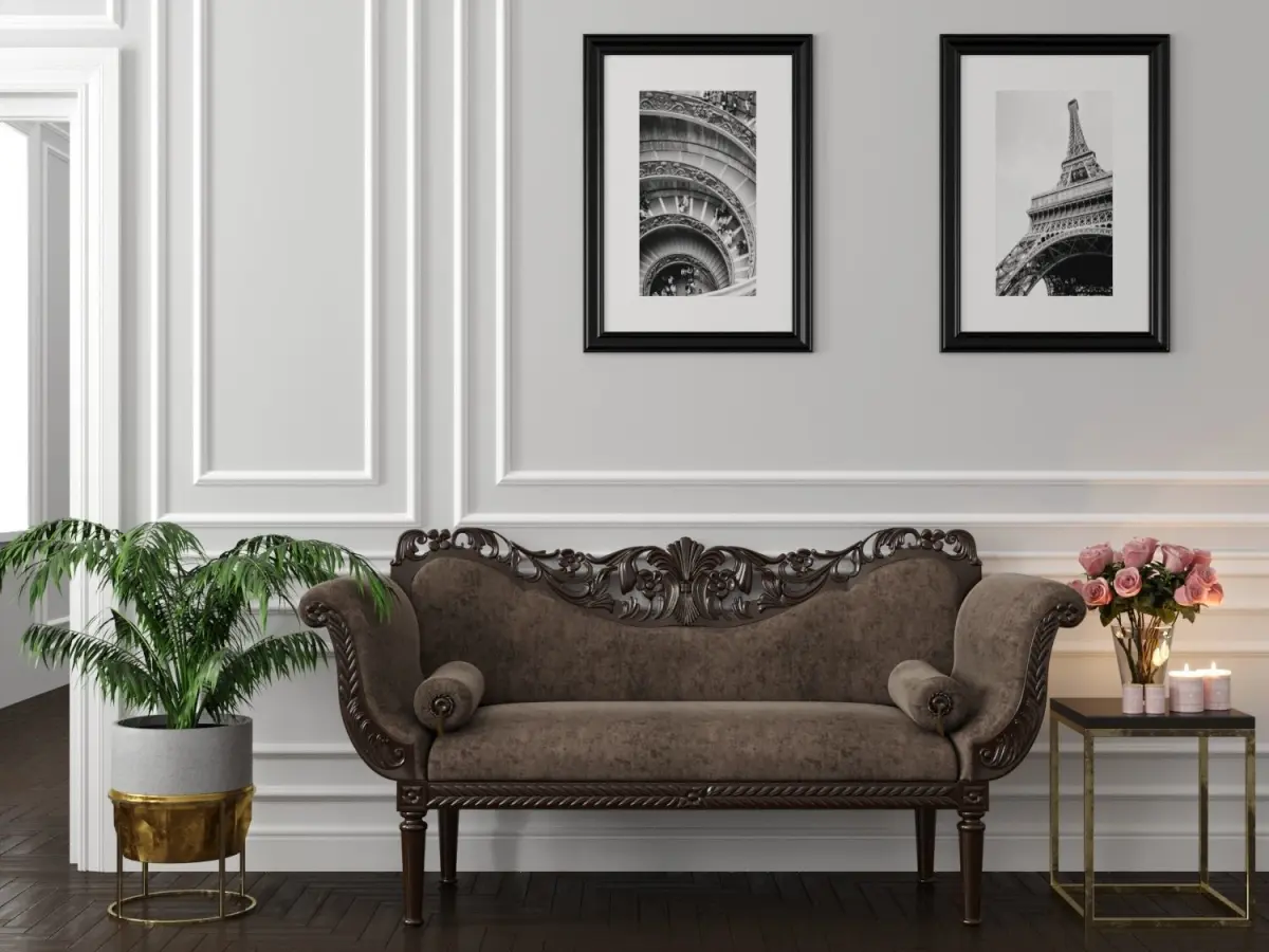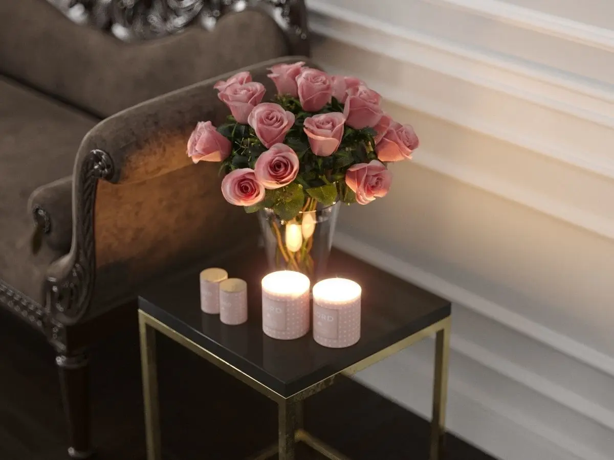 *** this scene include living room, sofa , side table, home plant , flower and candles and decorative mouldings***