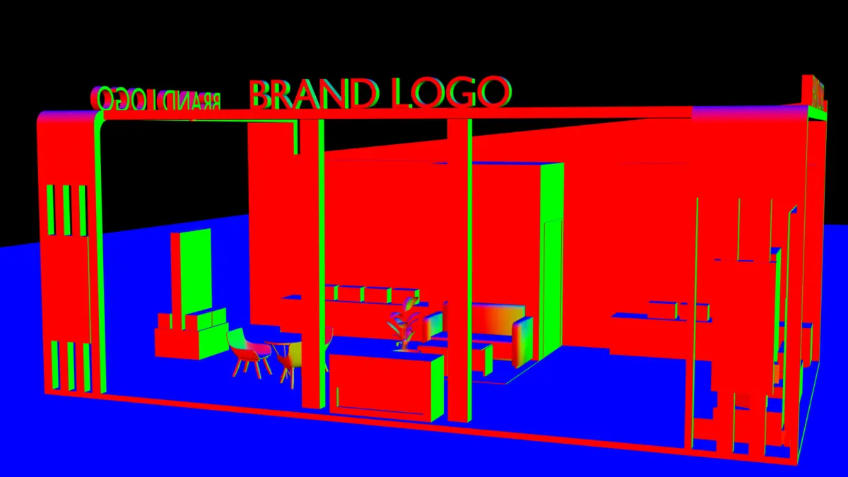 Description: A high-impact, 2-side open exhibition booth designed in Blender 4.3, this setup blends minimalism and vibrant visual communication. The combination of clean architecture, large display areas, and well-placed branding spaces makes it perfect for corporate expos, tech summits, or product showcases.