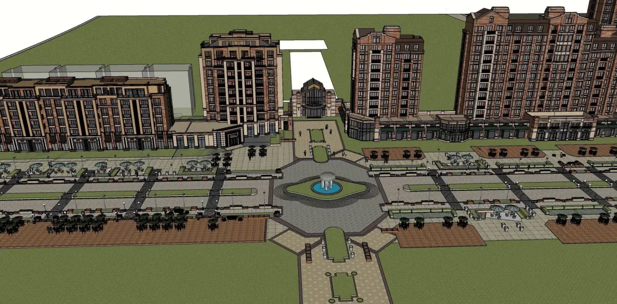 interactive environment along highrise building mall 3D model