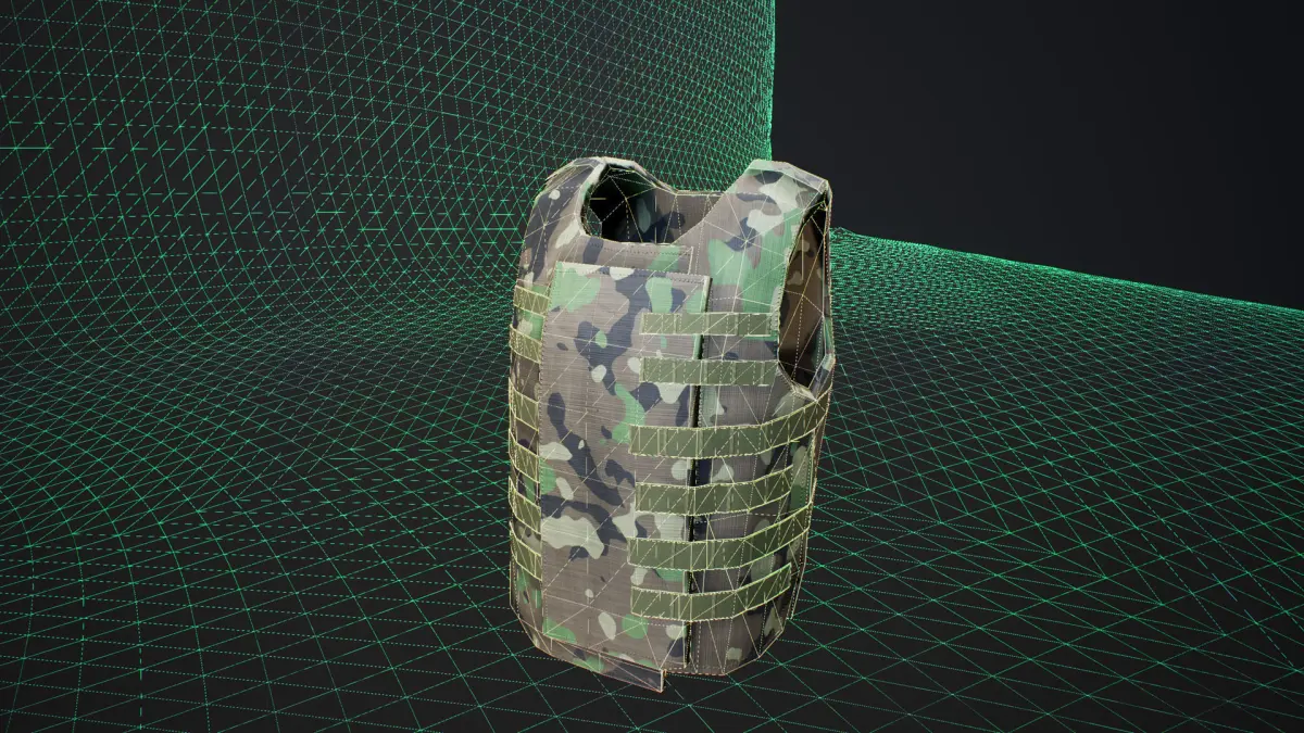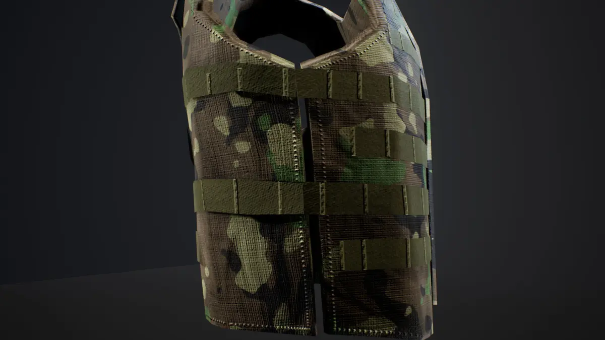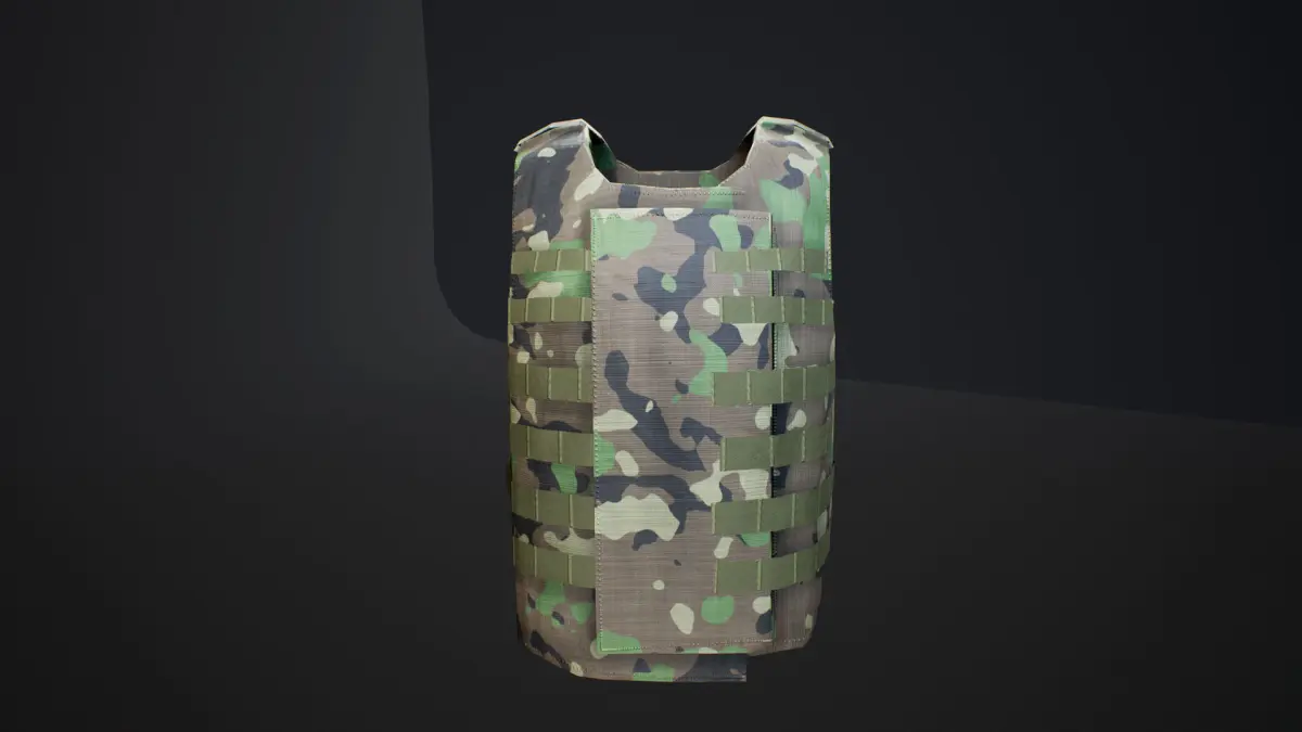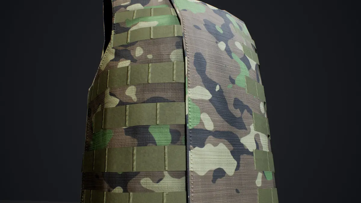 -Flat green texture as well as Tileable camo material if using UE4. Apply any seamless camo texture tot he Vest material.