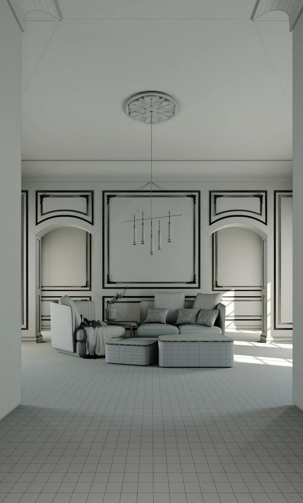 This is an interior scene with lighting, ready to render with: