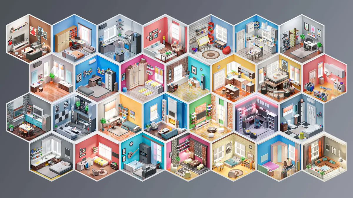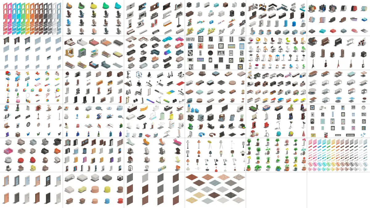 KEY FEATURES - 1391 unique assets that unlock boundless opportunities for creating unique interiors. Arrange furniture and decorations to make your spaces truly one-of-a-kind.