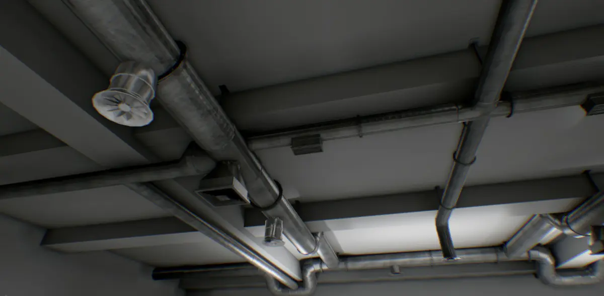 Interior air ducts modular system 38 elements 1 with animationAir ducts game ready PBR asset