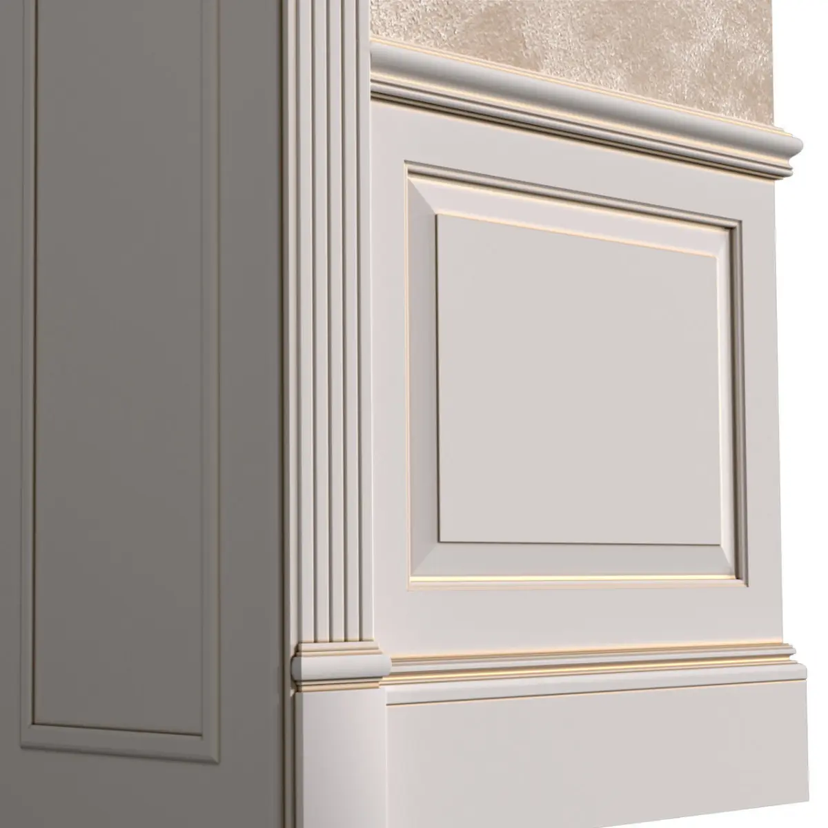 Classic plaster wall panel with gilded capitals and decorative Ottocento plaster with a velvety mother-of-pearl effect.paint OTTOCENTO OIKOS,Decorative plasterWall panels painted with acrylic latex water-based matte paint. Framed decorative paint OTTOCENTO OIKOSVenetian plasterDecorative wall panelsFINISHING THE WALLS OF THE HOUSE WITH GYPSUM FACING PANELS